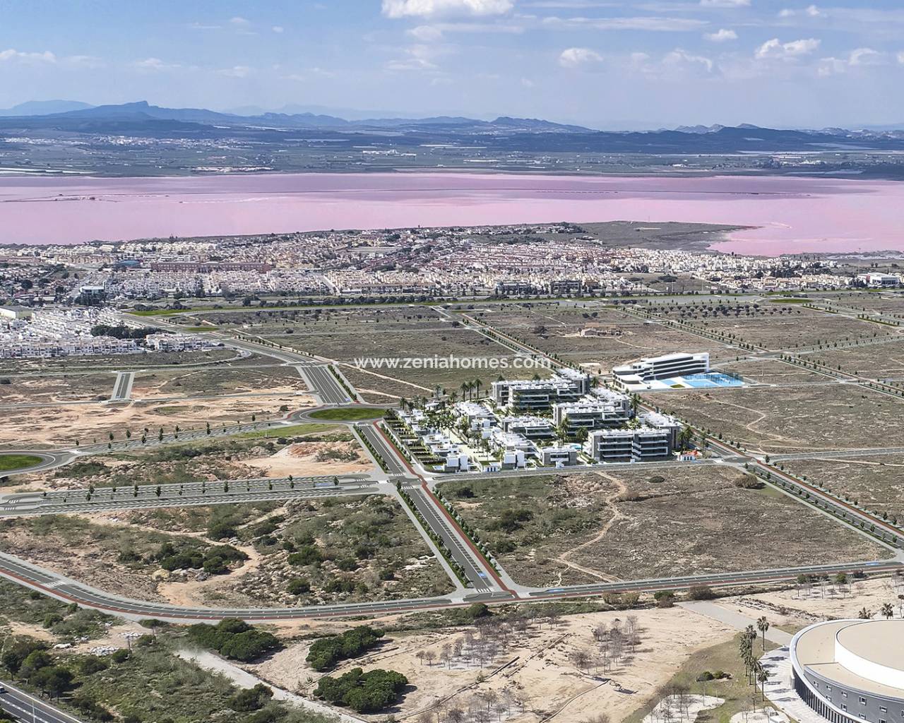 Laguna Pueblo ligger i et smukt naturmiljø, mellem naturparken Lagunas de la Mata og Rosa de Torrevieja-lagunen. Den første udvikling vil omfatte 240 boliger af forskellig type, herunder lejligheder, bungalows, dobbelthuse med 1, 2 og 3 soveværelser og parcelhuse med 1, 2 og 3 badeværelser. Stuelejlighederne og bungalowerne får have, mens lejlighederne på øverste etage får solarium. Alle boliger får naturligt lys og rummelige rum. Villaerne har også store haver med mulighed for at skabe en privat swimmingpool. Alt efter boligtype vil alle boligenheder have udendørs parkering og/eller kælder og depotrum.