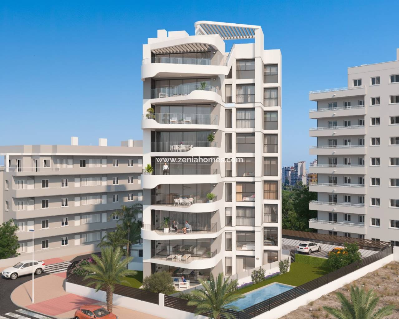 Unik lejlighedsbygning med én lejlighed pr. etage, beliggende ved flodbredden med en fantastisk udsigt og tæt på centrum af Guardamar del Segura. De har 3 soveværelser og 2 badeværelser, privat parkering og en fælles pool. Stranden kan nås ved at gå gennem en fyrreskov, og lystbådehavnen ligger kun 2 km væk. Guardamar er en livlig by med lokale markeder, en bred vifte af tjenester og en busstation.