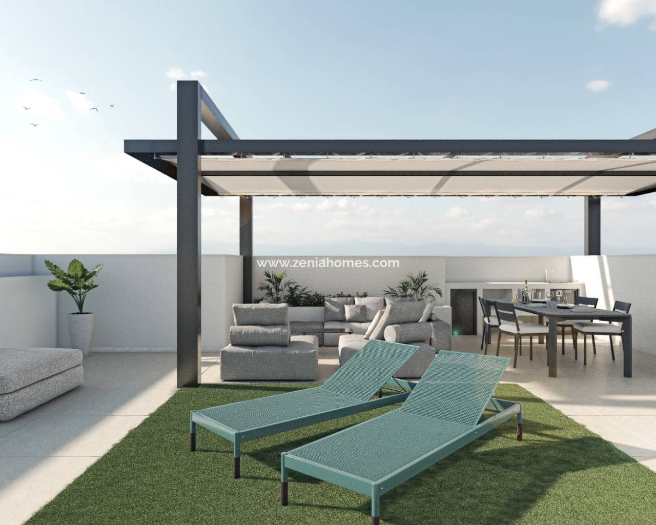Eine kleine Kampagne von Doppelhäusern in Pilar de la Horadada. Die Häuser können zwischen einem Dachgeschoss und einer zweiten Etage wählen, beide verfügen über zwei Schlafzimmer und zwei Badezimmer, das Erdgeschoss verfügt über einen Garten und das Dachgeschoss verfügt über eine große Terrasse zum Sonnenbaden. . Die Häuser sind mit Haushaltsgeräten, Vorinstallation einer Klimaanlage und Parkplatz ausgestattet.