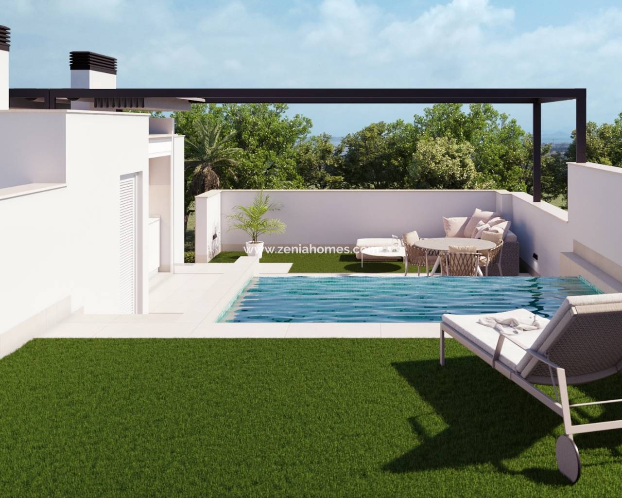 Diese schönen neuen Apartments mit zwei oder drei Schlafzimmern befinden sich in der charmanten spanischen Stadt Pilar de la Horadada und verteilen sich auf die erste und zweite Etage. Die Apartments im Erdgeschoss verfügen über einen privaten Swimmingpool, während die Apartments im obersten Stockwerk über charmante Dachterrassen mit Sommerküchen und privaten Pools verfügen. Diese Dachterrassen eignen sich ideal, um Gäste zu unterhalten oder einfach das mediterrane Klima zu genießen. Die Apartments verfügen über geräumige Schlafzimmer, eine moderne Küche und ein gemütliches Wohnzimmer mit viel natürlichem Licht. Dank der idealen Lage in der Nähe von Geschäften, Restaurants und Cafés sind sie die perfekte Wahl für alle, die Komfort suchen. Mit ihrem attraktiven Design und der hervorragenden Ausstattung sind diese Apartments ideal für alle, die ein komfortables Zuhause oder Ferienhaus suchen. Alle Apartments verfügen über Haushaltsgeräte, Klimaanlage, Parkplatz und Fahrradkeller.