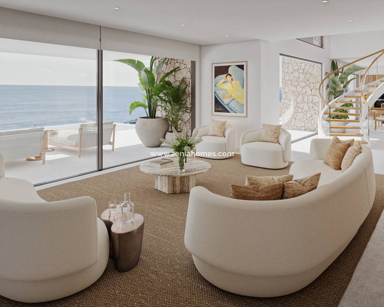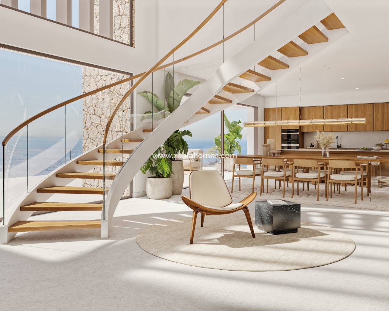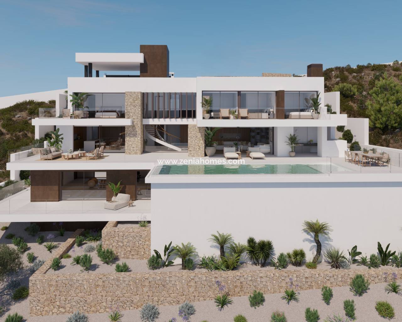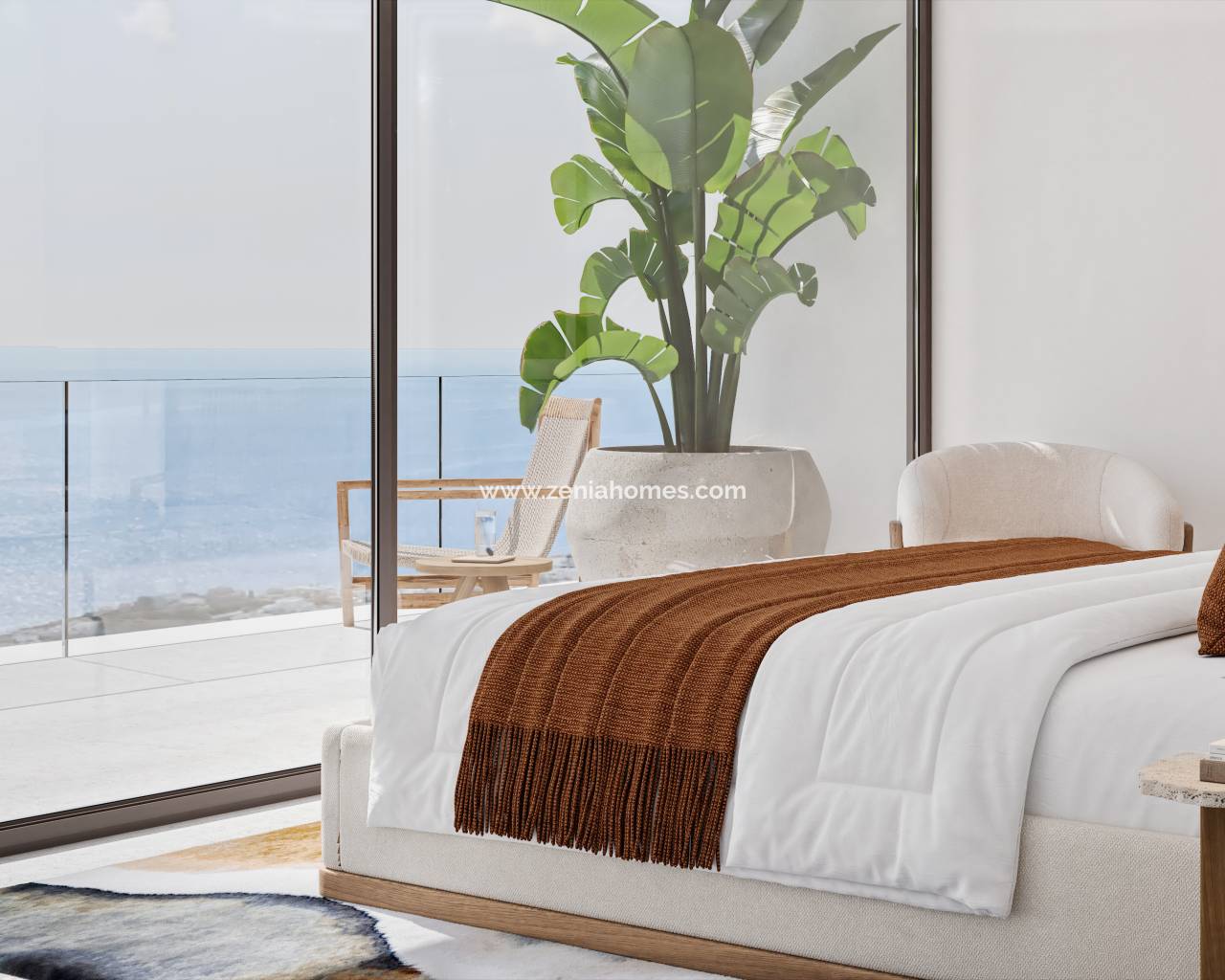 Gelegen auf einem exklusiven Grundstück in Residencial Jazmines, Cumbre del Sol, ist Villa Ocaso ein modernes architektonisches Zuhause, das darauf ausgelegt ist, seine Ausrichtung und den offenen Blick auf das Mittelmeer optimal zu nutzen. Die moderne Struktur mit klaren Volumen und großen bodentiefen Fenstern ermöglicht eine natürliche Integration zwischen Innen- und Außenbereich. Das Hauptgeschoss konzentriert sich auf die Tageszone, mit einem Wohn-Essbereich, der sich direkt zur Terrasse und zum Infinity-Pool öffnet. Die offene Küche, ausgestattet mit hochwertigen Materialien wie Walnussholz, bietet Funktionalität und Panoramablicke und wird so zum zentralen Bereich sowohl für den Alltag als auch für gesellschaftliche Anlässe. Im Obergeschoss befinden sich die Schlafzimmer, alle mit Zugang zu privaten Terrassen und Meerblick. Die Master-Suite besticht durch ihre Großzügigkeit, eine private Terrasse und ein en-suite Badezimmer mit modernen Details. Die Villa verfügt außerdem über ein Untergeschoss, das als zusätzliches Wohnzimmer, Schlafzimmer oder multifunktionaler Raum genutzt werden kann, mit direktem Zugang zu einer Außenterrasse. Die Innenräume bewahren eine minimalistische und warme Ästhetik, mit Holzelementen, die Komfort und visuelle Kontinuität bieten. Große Fenster gewährleisten den ganzen Tag über Licht und ermöglichen den Genuss der Umgebung aus den meisten Räumen. Villa Ocaso ist mit hocheffizienter Ausstattung und moderner Technologie ausgestattet, darunter Photovoltaikanlagen, Vorinstallation für eine Ladestation für Elektrofahrzeuge, Klimaanlage und Warmwasserbereitung über eine Mitsubishi Electric®-Wärmepumpe, mechanische Lüftung mit Wärmerückgewinnung, Fußbodenheizung und Smart-Home-Steuerung für die Fernverwaltung der Anlagen. Mit einer durchdachten Raumaufteilung, die Privatsphäre, Ausblicke und Komfort garantiert, ist Villa Ocaso die ideale Wahl für alle, die ein modernes, effizientes Zuhause in einer der exklusivsten Gegenden von Cumbre del Sol suchen.