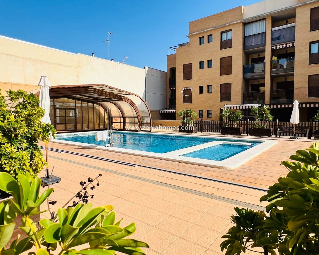 Este apartamento de 2 dormitorios cuenta con 2 baños, uno de ellos en suite, un balcón desde el amplio salón y otro aún más grande desde la cocina. Dispone de una plaza de aparcamiento subterráneo y un amplio trastero. La propiedad se encuentra cerca del mercado semanal de San Pedro del Pinatar y cuenta con un bonito complejo con una gran piscina climatizada (que se puede cubrir en invierno), gimnasio y 2 saunas.