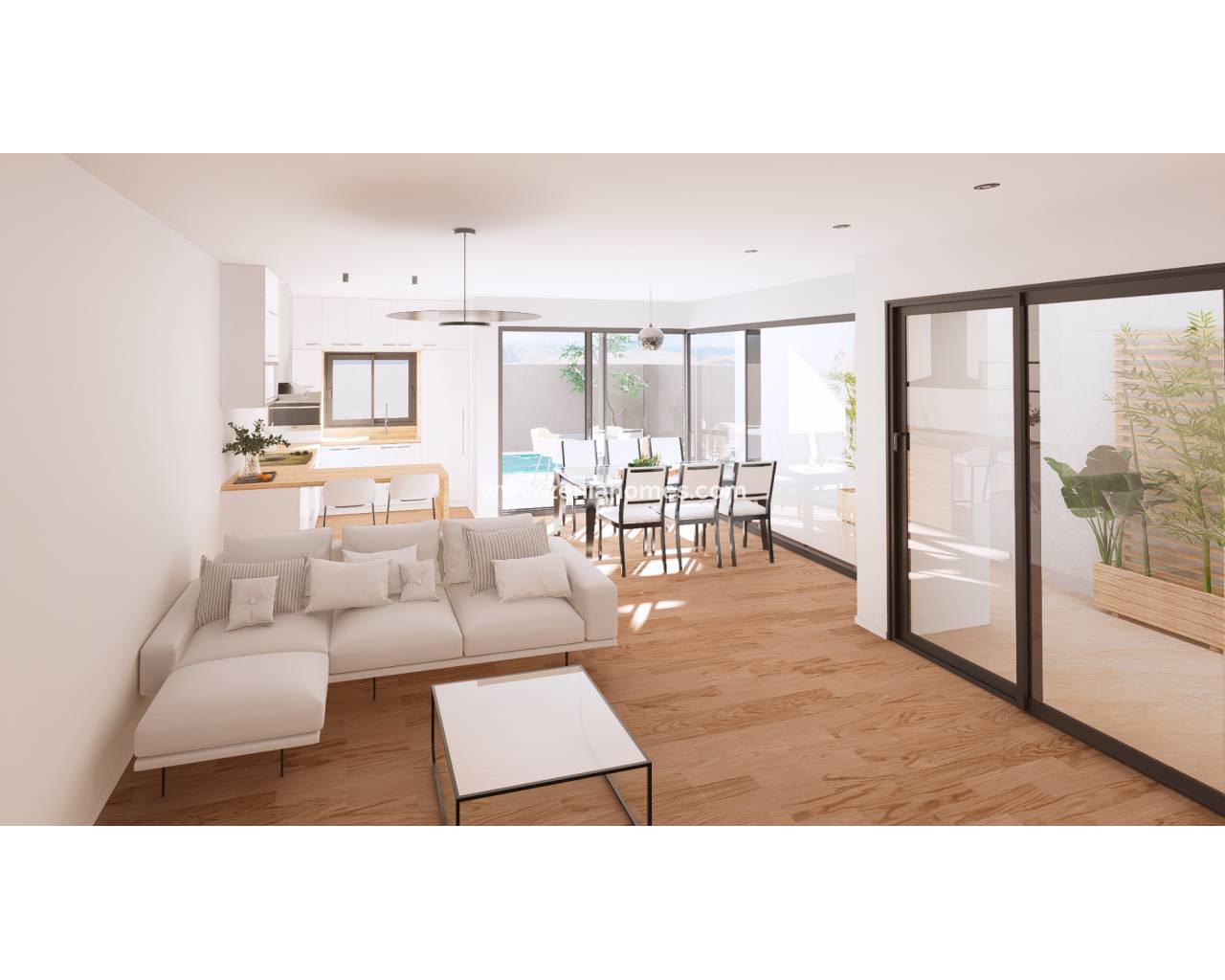 Ces maisons offrent une surface habitable d'environ 190 à 210 m² , avec un agencement intelligent qui sépare clairement les espaces de vie et de nuit. Chaque maison a été conçue pour optimiser la lumière naturelle, le confort et la fonctionnalité , créant ainsi des espaces de vie spacieux et modernes, idéaux pour les familles ou comme investissement immobilier sur la Costa Cálida.