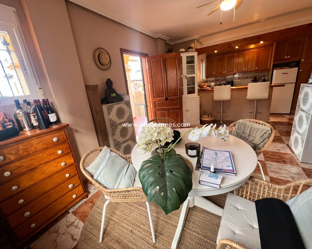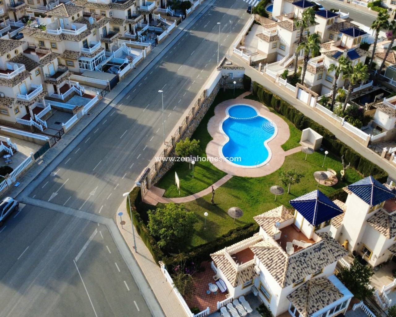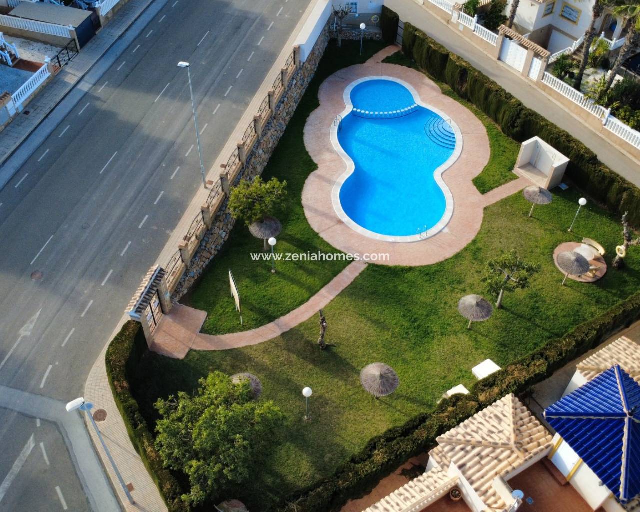 Þetta tveggja svefnherbergja hús með fjórum baðherbergjum er staðsett í hjarta Orihuela Costa, nálægt Zenia Boulevard og La Zenia ströndinni. Það býður upp á rólega og afskekkta staðsetningu og er með stóra sameiginlega sundlaug. Ströndin er aðeins í nokkurra mínútna hjólaferð um rólegar götur og göngustíga.