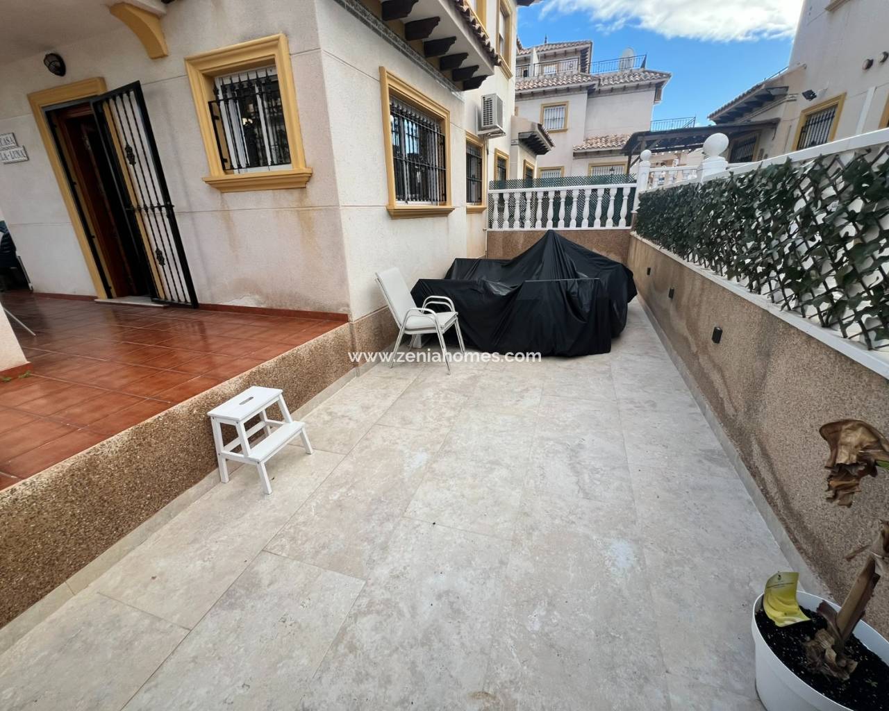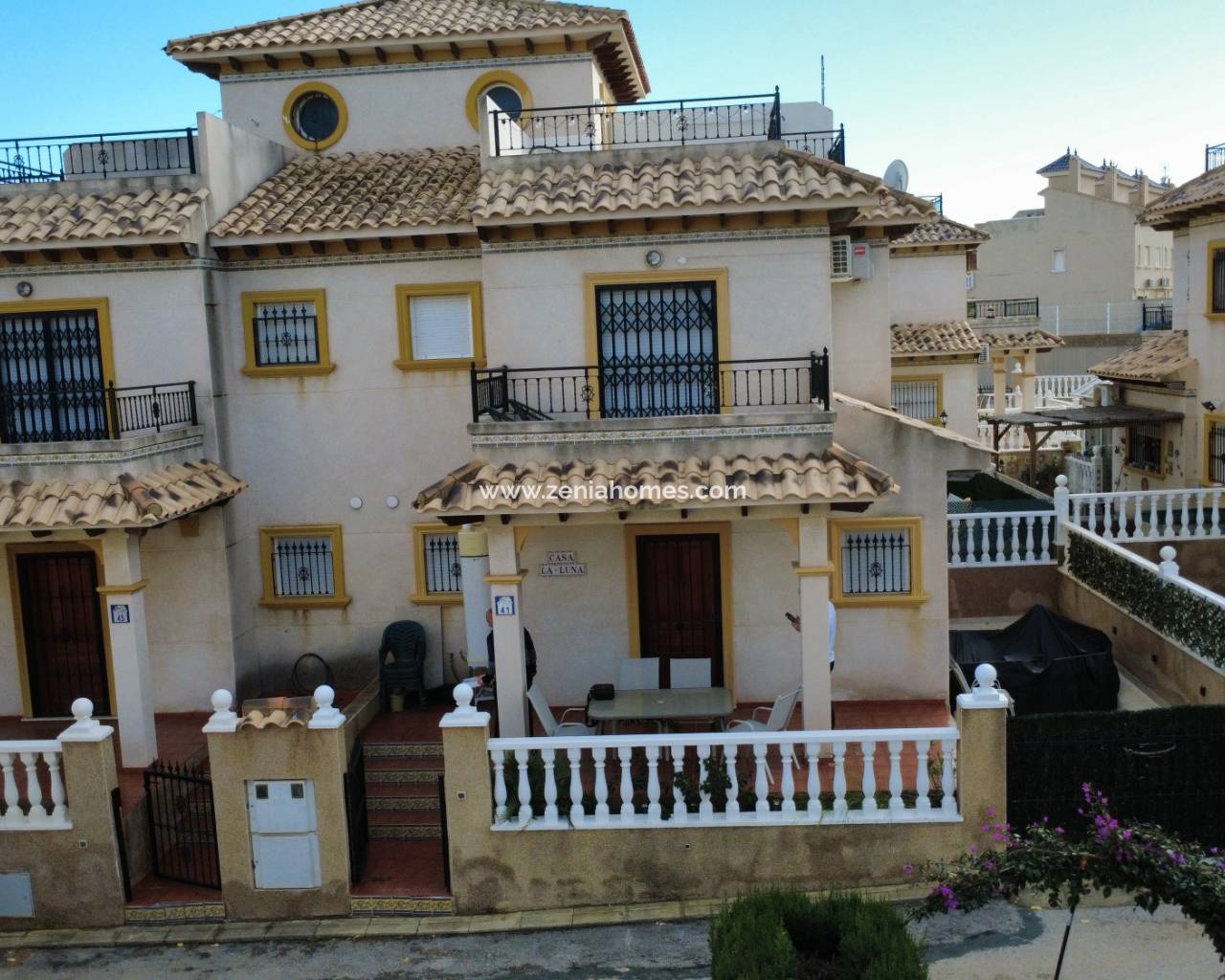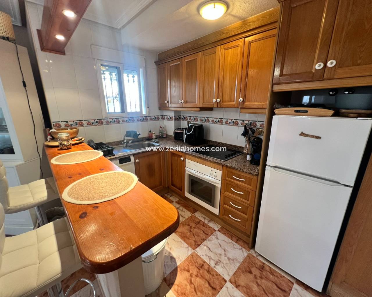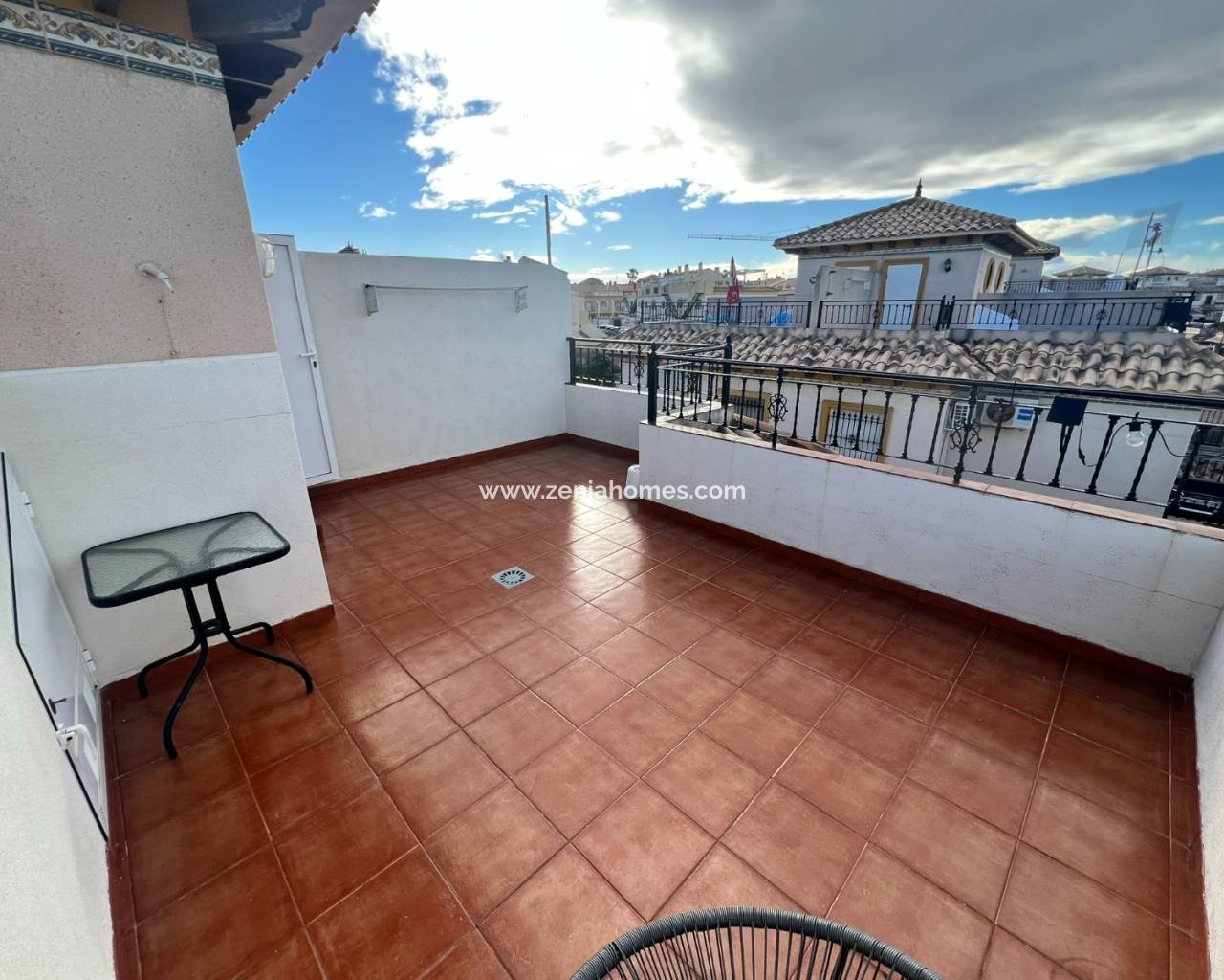 Þetta tveggja svefnherbergja hús með fjórum baðherbergjum er staðsett í hjarta Orihuela Costa, nálægt Zenia Boulevard og La Zenia ströndinni. Það býður upp á rólega og afskekkta staðsetningu og er með stóra sameiginlega sundlaug. Ströndin er aðeins í nokkurra mínútna hjólaferð um rólegar götur og göngustíga.