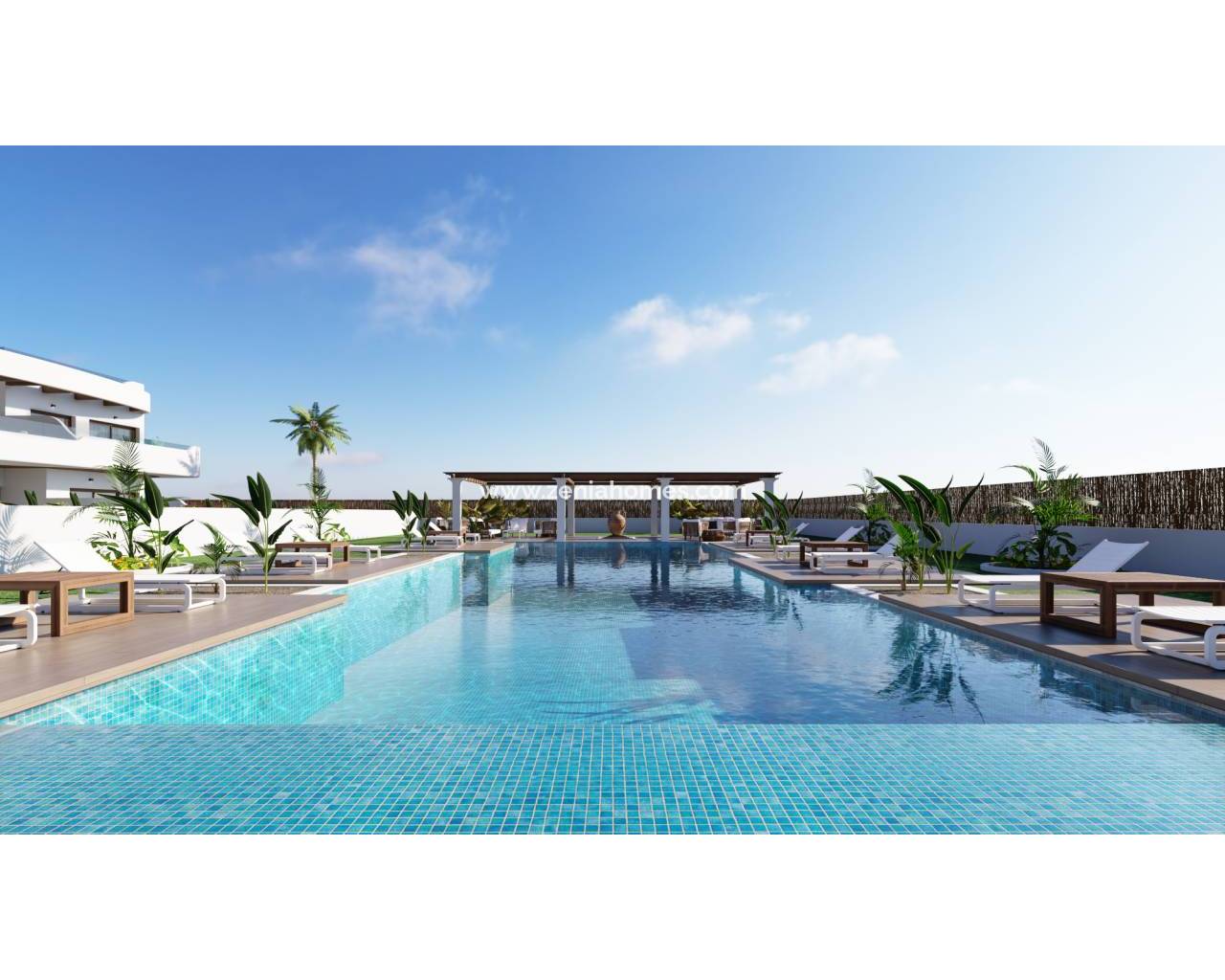 Uppgötvaðu nýtt íbúðakomplex í hinu friðsæla Los Alcázares á fallegu Costa Cálida. Þetta einstaka íbúðakomplex er aðeins í 25 mínútna fjarlægð frá Murcia flugvelli og 55 mínútna fjarlægð frá Alicante flugvelli. Frábærar samgöngutengingar við Cartagena, Murcia, Alicante og fallegu strendur Costa Cálida og Costa Blanca gera þetta verkefni að kjörnum stað til að búa á.