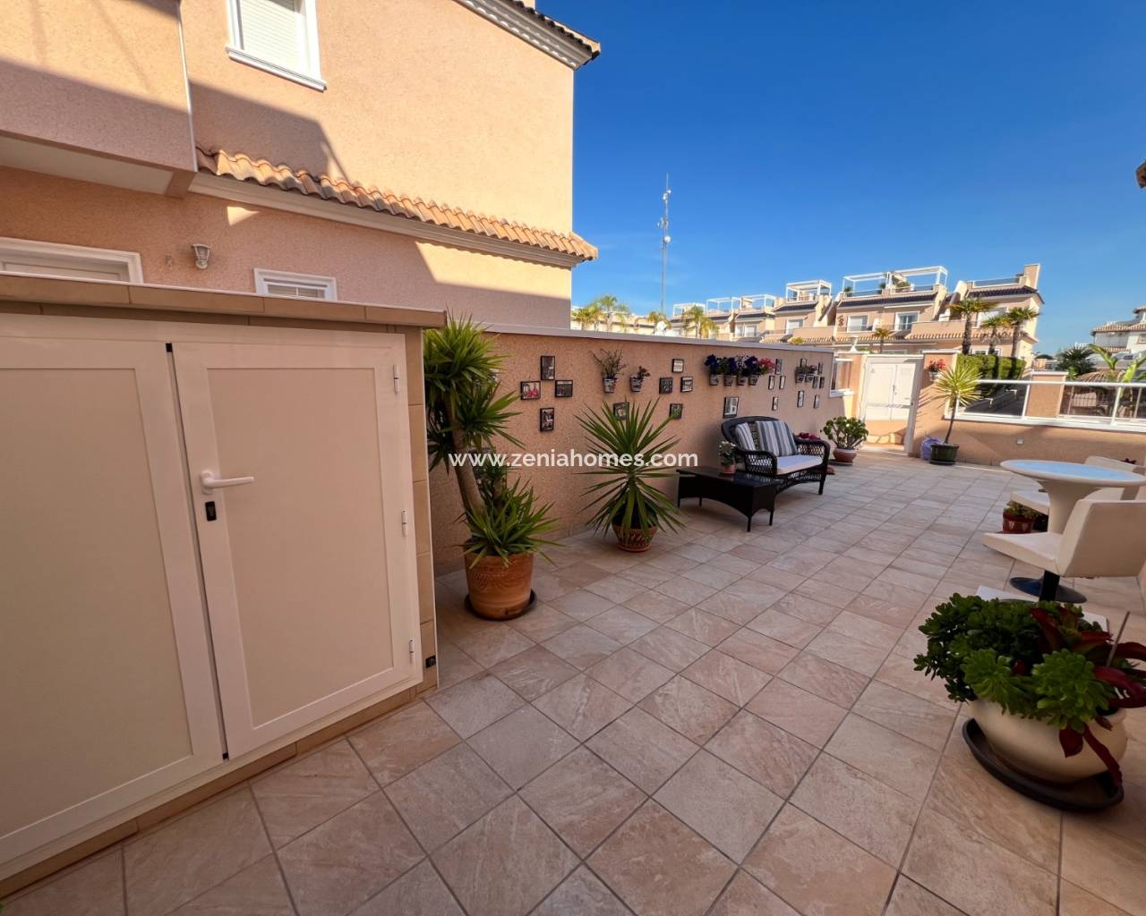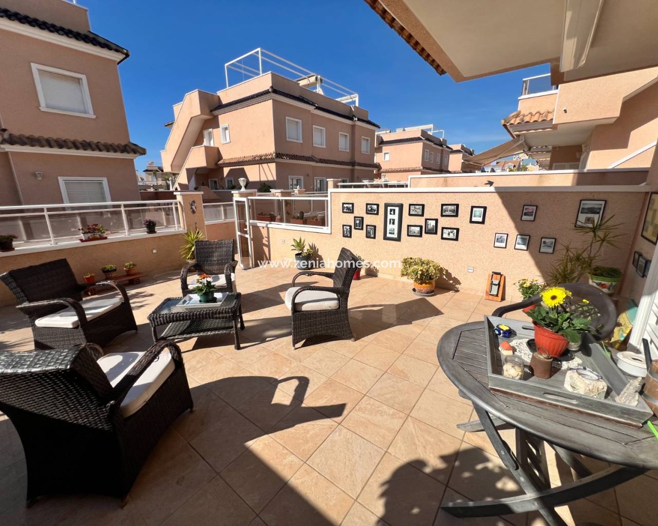 Í göngufæri eru nokkrir barir, veitingastaðir, verslanir, líkamsræktarstöð og stórmarkaður. Strendurnar og smábátahöfnin í Campoamor eru í stuttri akstursfjarlægð. Hin fræga Zenia Boulevard og Villamartin golfvöllurinn eru einnig í nágrenninu.