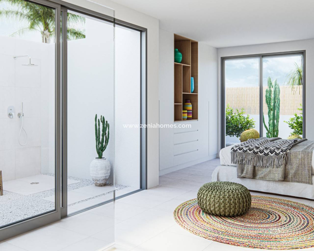 Deze nieuwe villa's beschikken altijd over 3 slaapkamers, 2 badkamers, een volledig uitgeruste keuken en een tuin met parkeergelegenheid. We bieden percelen aan van 180 tot 217 m², met de mogelijkheid om een kelder en solarium om te bouwen. Ideaal gelegen op een steenworp afstand van winkels en voorzieningen, en op minder dan 30 minuten rijden van de internationale luchthaven van Alicante.