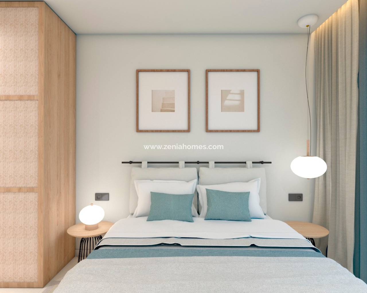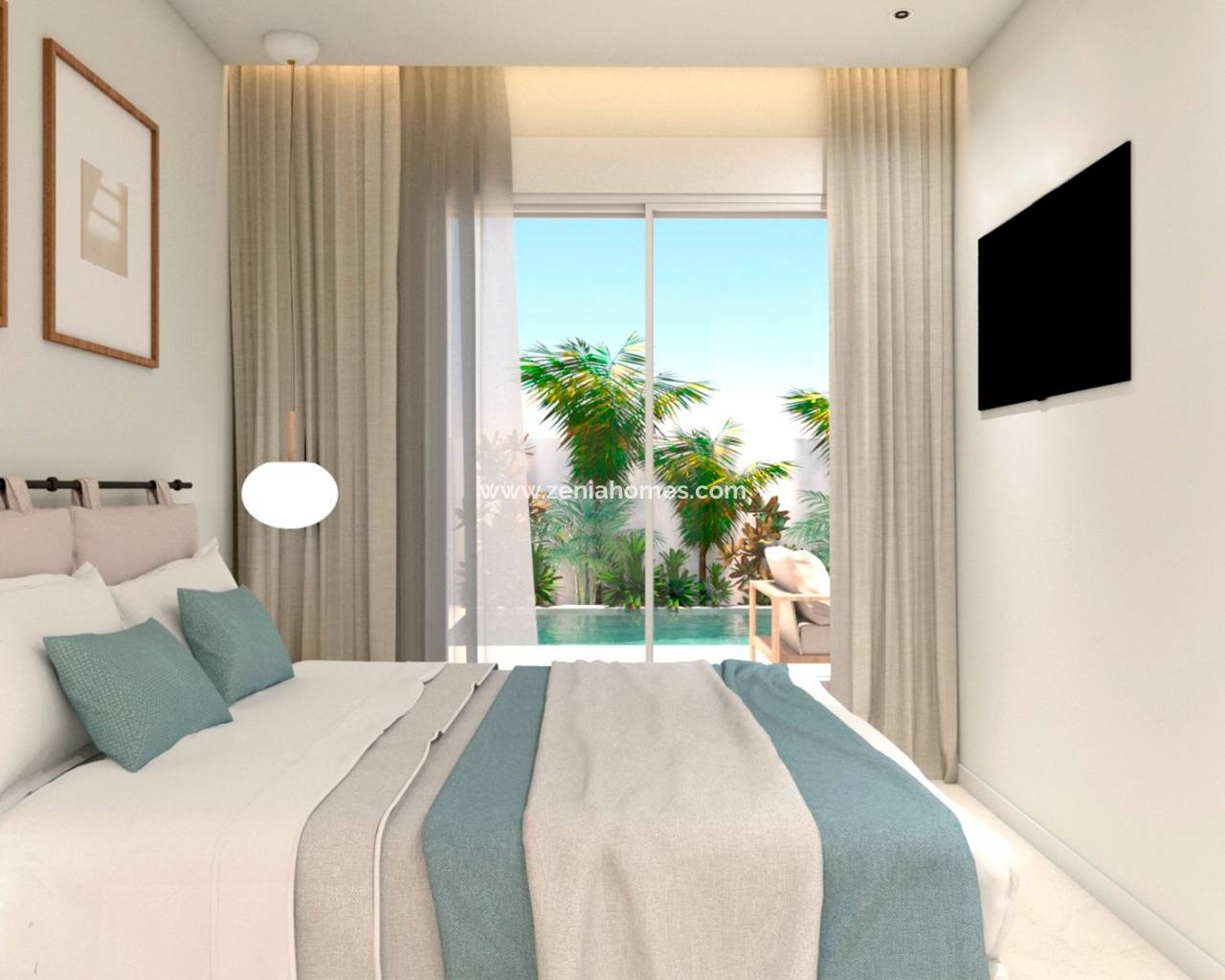 En liten koselig urbanisasjon med duplex-leiligheter, alle med 3 soverom, 2 bad og eget basseng. Kun 250 meter til hvite sandstrender og kort vei til alle fasiliteter.