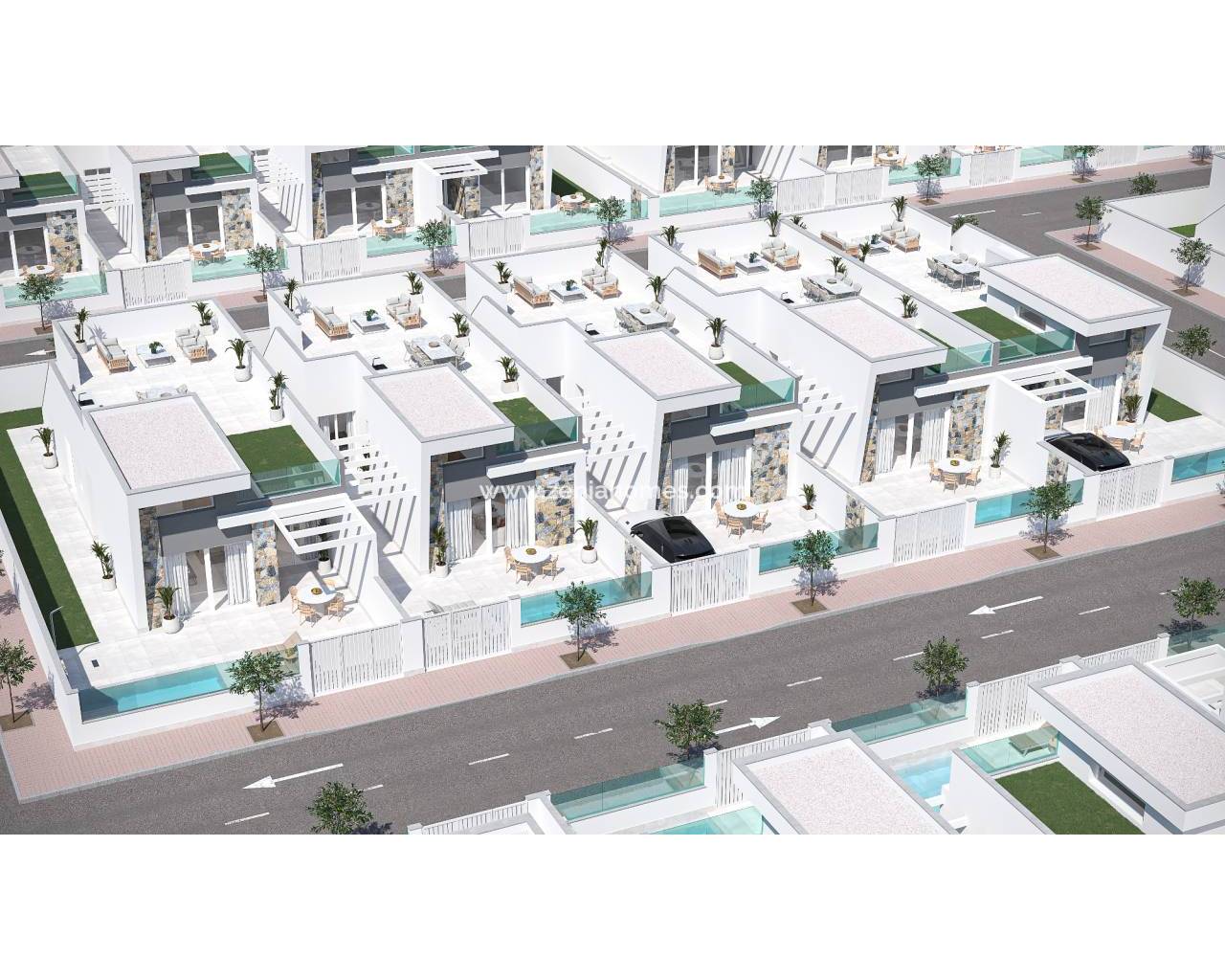 Disse villaene ligger bare 1,5 km fra de uberørte strendene i Mar Menor, og tilbyr den perfekte balansen mellom ro og komfort. Los Alcazares er kjent for sitt pulserende kystliv, vannsport og solskinn året rundt. Den nærliggende La Serena golfbanen har et utmerket rykte i området takket være innsjøene og den omkringliggende vegetasjonen.