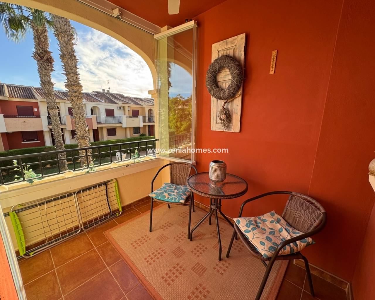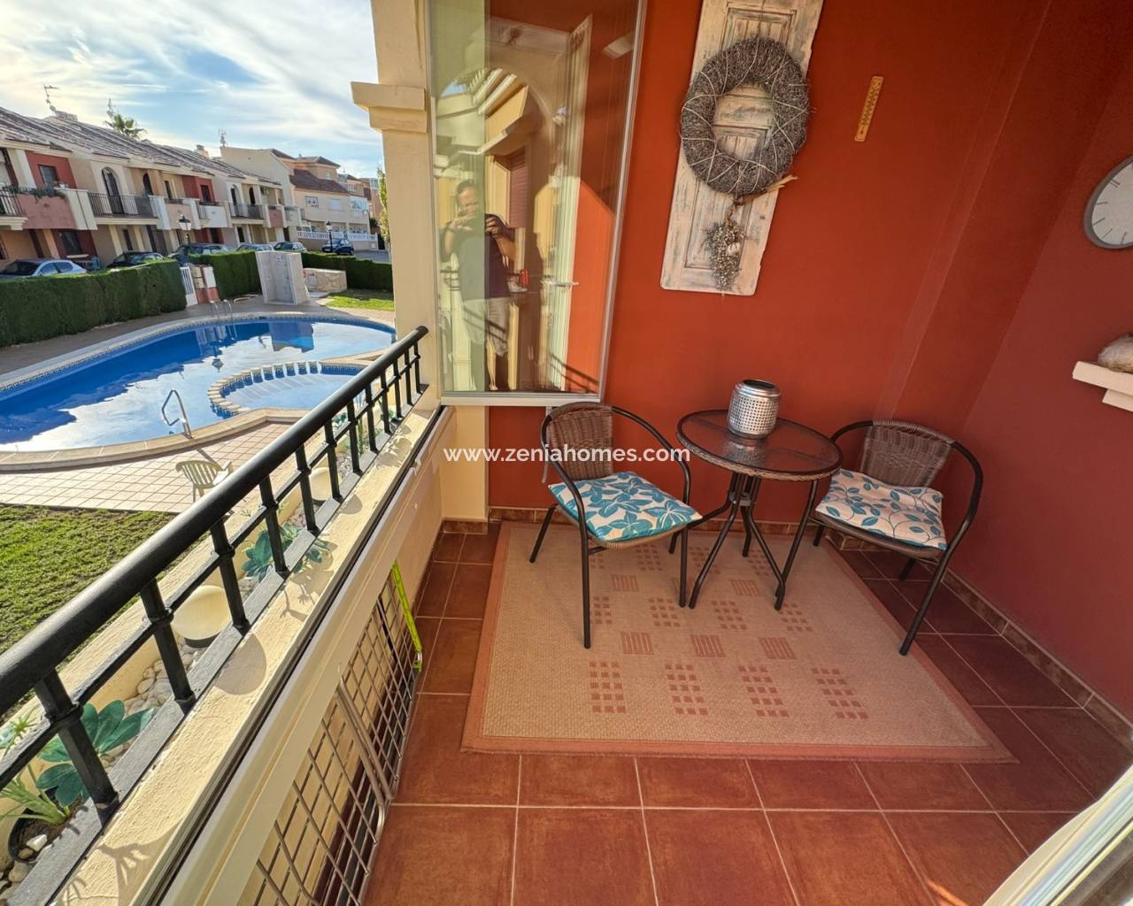 Denne vakre leiligheten i toppetasjen, vendt mot sørøst, har utsikt over felleshager og svømmebasseng. Den ligger i nærheten av Torrevieja, i et rolig område med gode bussforbindelser og mange fasiliteter.