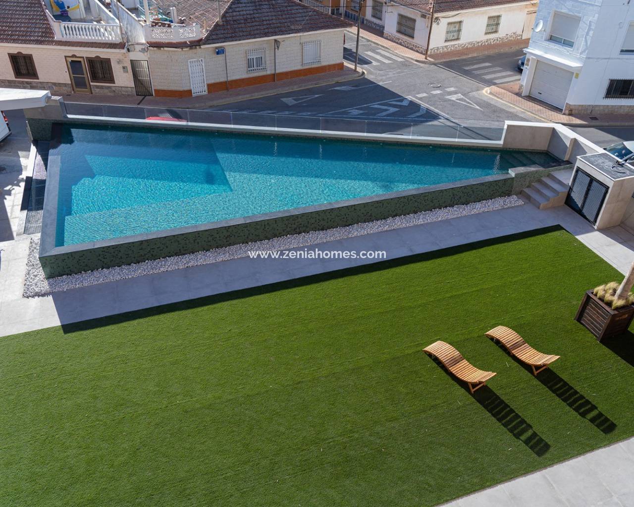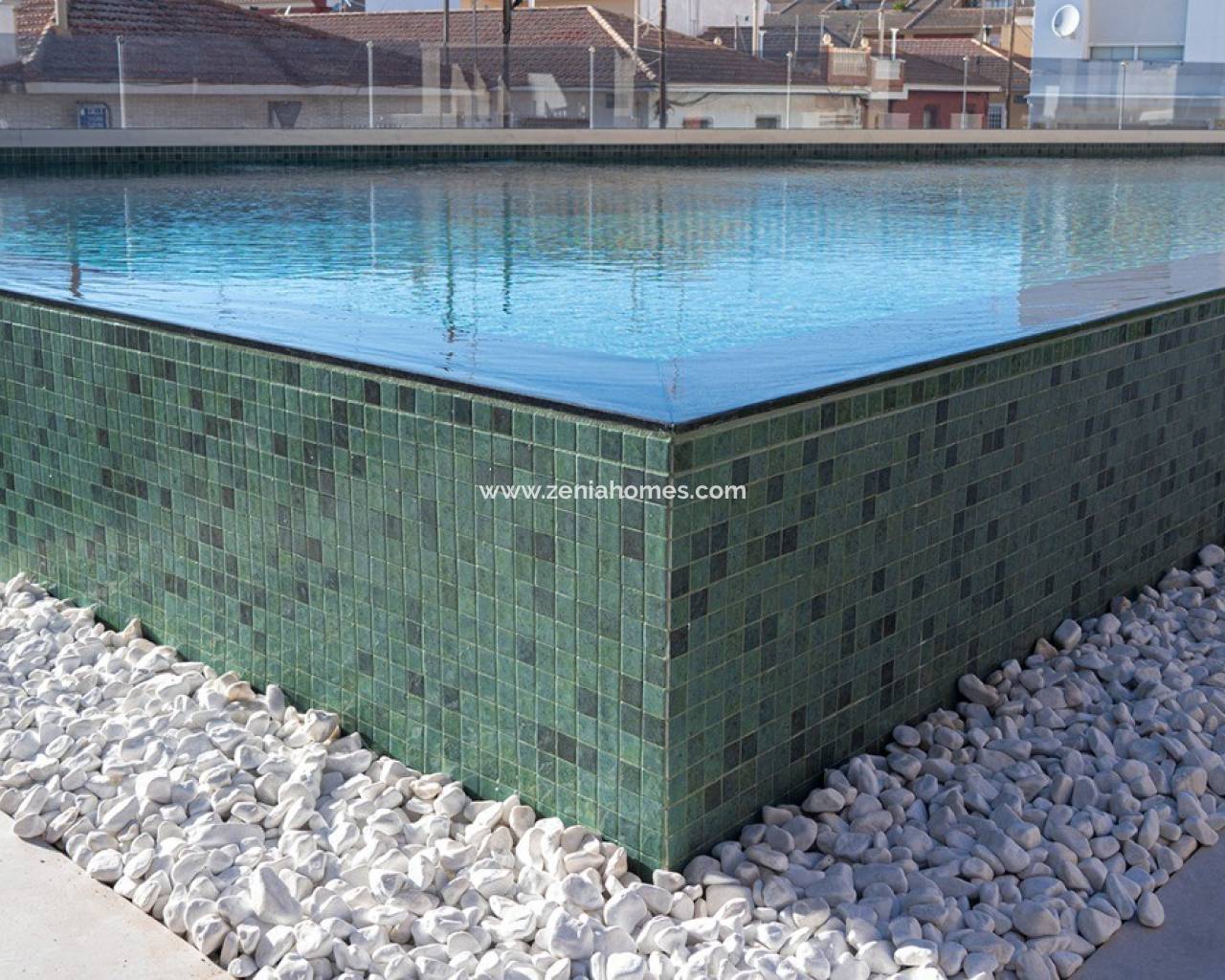In the centre of San Pedro del Pinatar, surrounded by all services (shops, banks, cafeterias, etc.) a short distance from the Mar Menor and the Mediterranean Sea, the residential has 51 homes in 3 independent buildings  the majority of which are 3 bedrooms and 2 bathrooms, and the rest 2 bedrooms and 2 bathrooms with an infinity pool, a garage equipped with an electric charger and a storage room, both included in the prices, in the  information, you will see all the extras included, as an attraction all the houses have large terraces, the penthouses have spectacular views of the Mar Menor and the Mediterranean, etc.