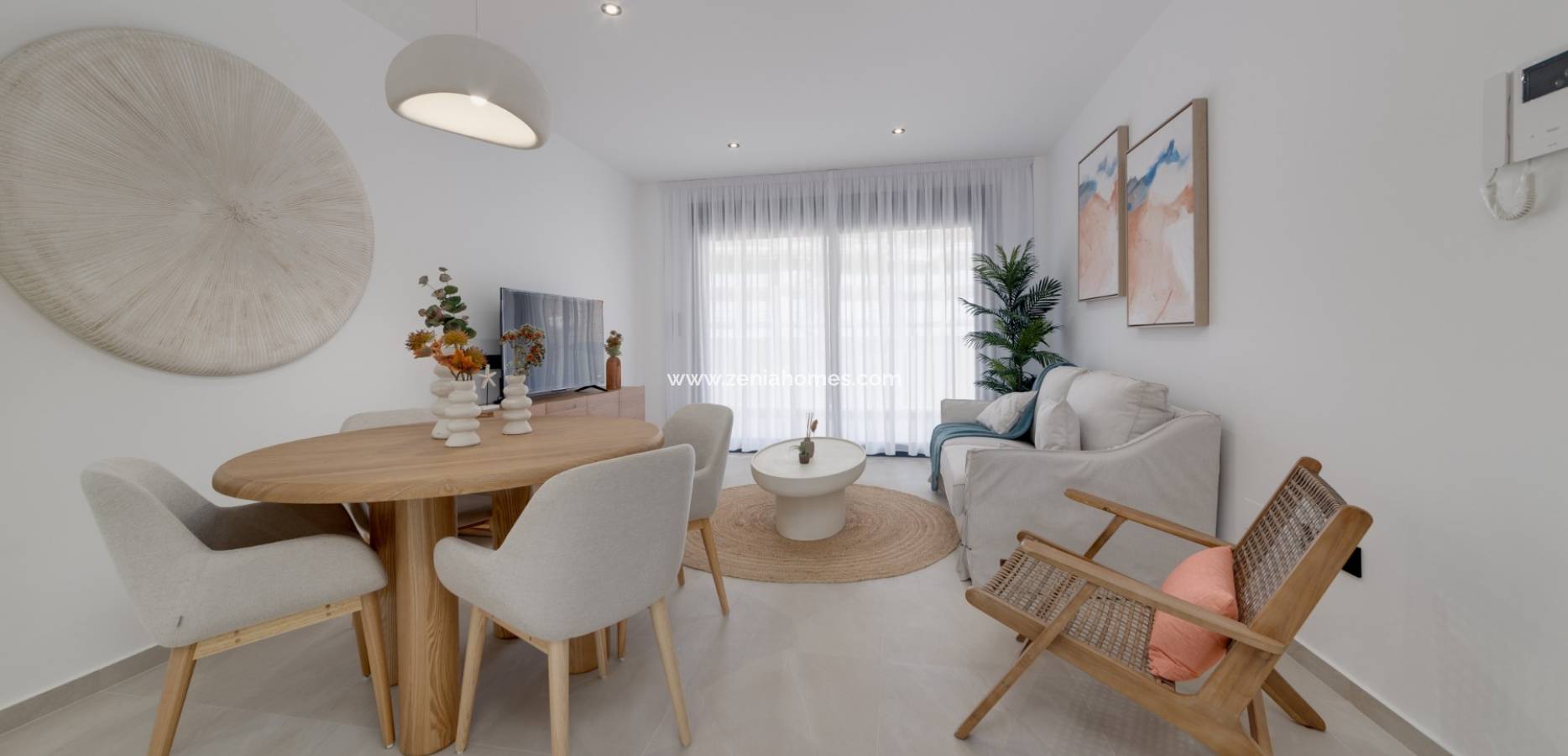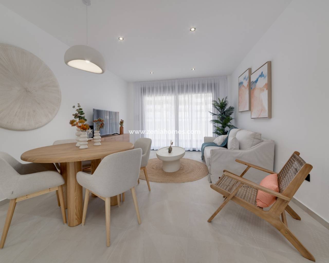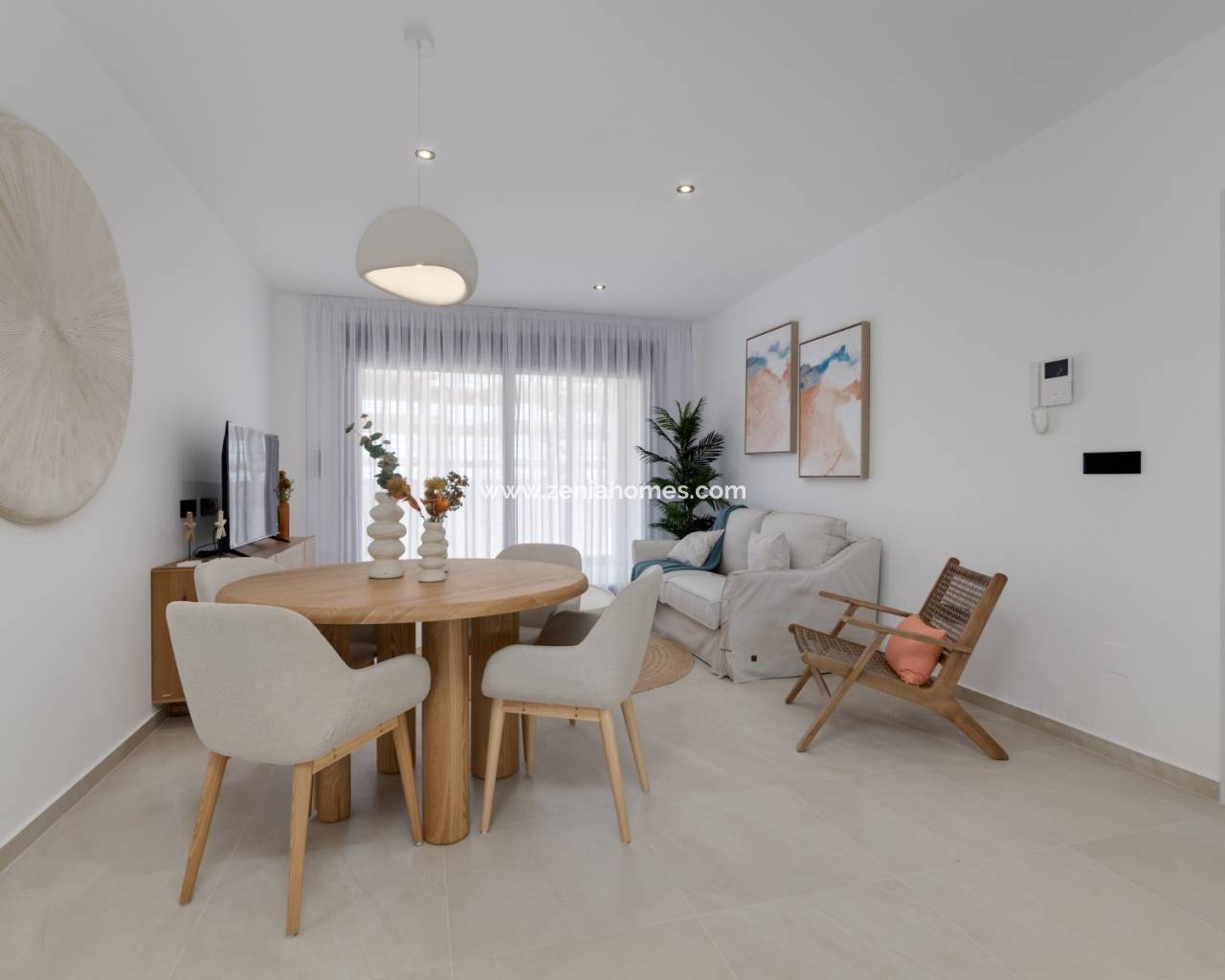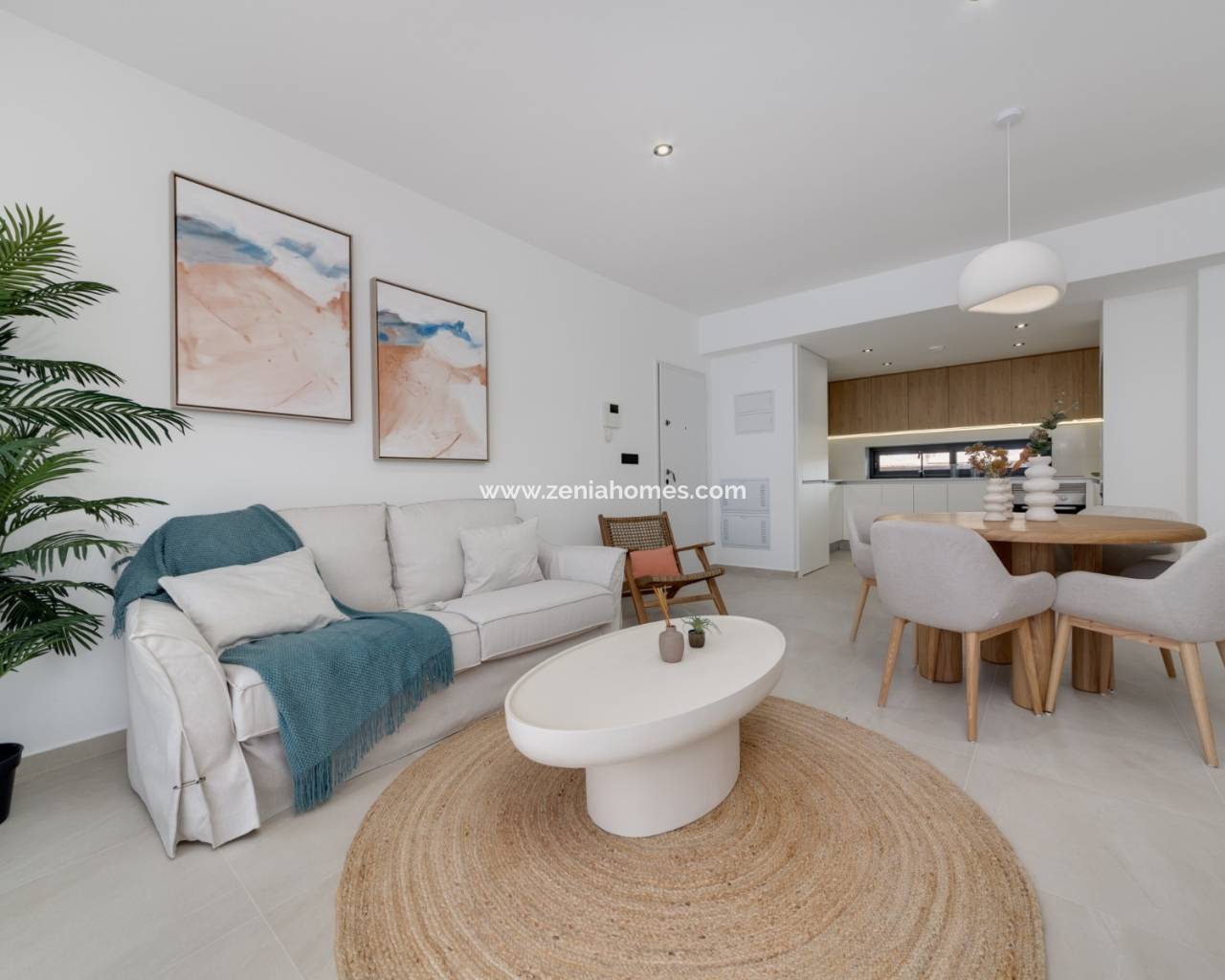 A Private complex of 78 modern apartments, with 3 residential buildings, large green area, swimming pool and play ground zones. Located in a beautiful and relaxing area of San Javier. Apartments with two/three bedrooms and two bathrooms, living room and open kitchen, all with underground parking space included. Ground floor with large terrace and garden, 4th floor with private solarium. Its located in a place where you can enjoy the sun, the beach and its golf courses. Just a few minutes away from Mar Menor, and very close to some leisure areas, a privileged area to live in.
