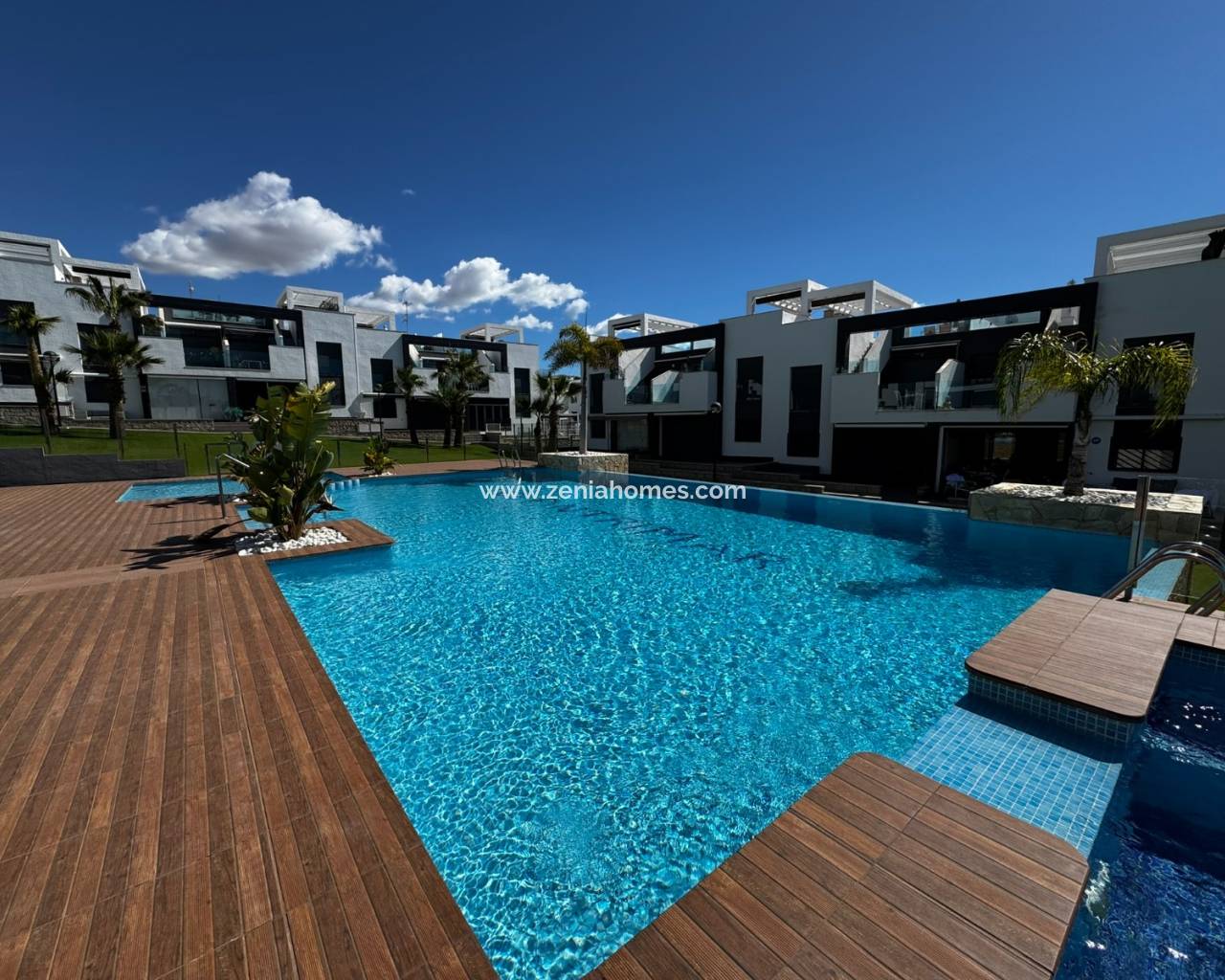 This property overlooks the large gardens and community pool of Oasis Beach 9. The property has 2 bedrooms and 2 bathrooms and an underground parking space, the bathrooms have underfloor heating, hot and cold A/C throughout the property and electric shutters. The property is located in Los Altos which has easy access to Torrevieja and the beaches of Orihuela Costa and is walking distance to many bars and restaurants. The property also has a rental license.