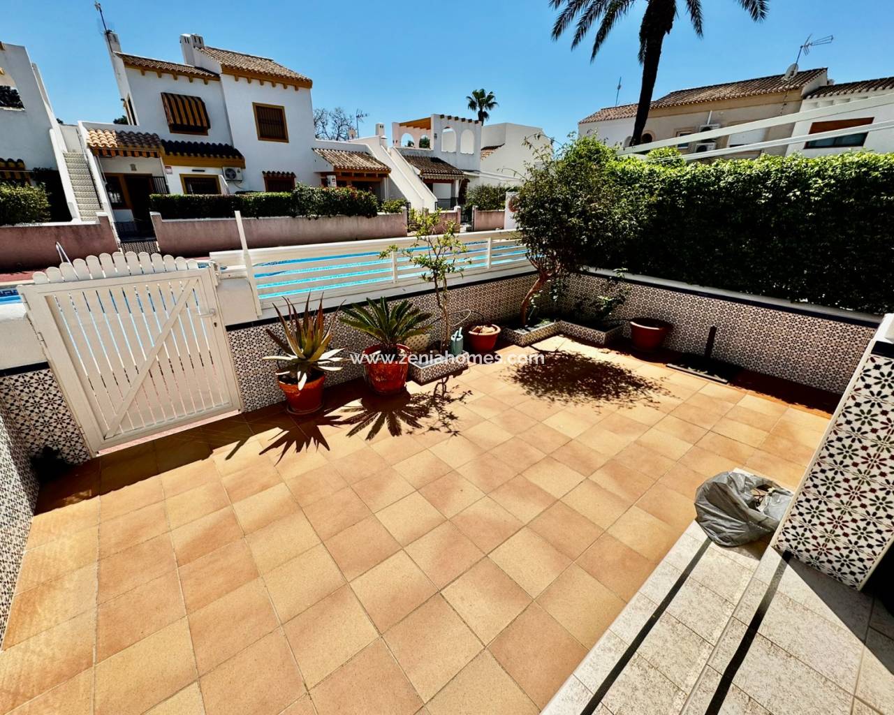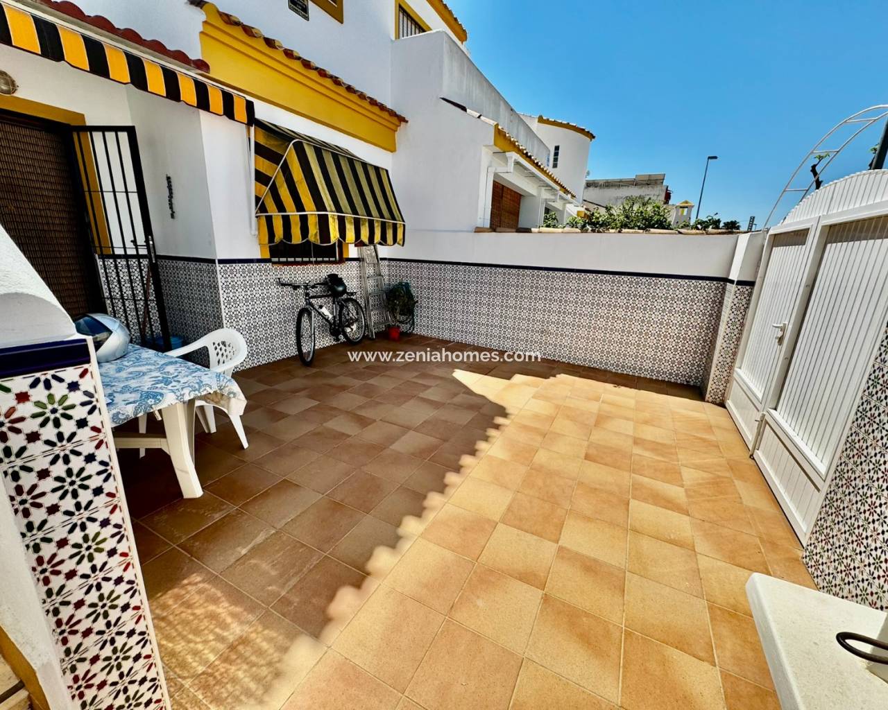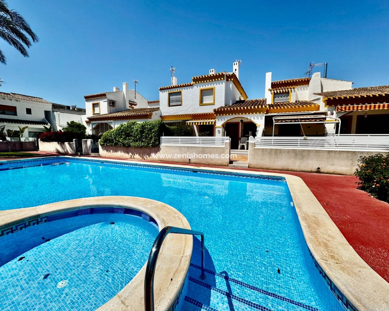 This Spanish style property is located in a small community and has a large community pool. The property has 4 bedrooms , 2 downstairs and 2 upstairs, 2 terraces on the ground floor 1 is West facing and the other is East facing overlooking the community pool. The property has ceiling fans and a fireplace and has been very well looked after.