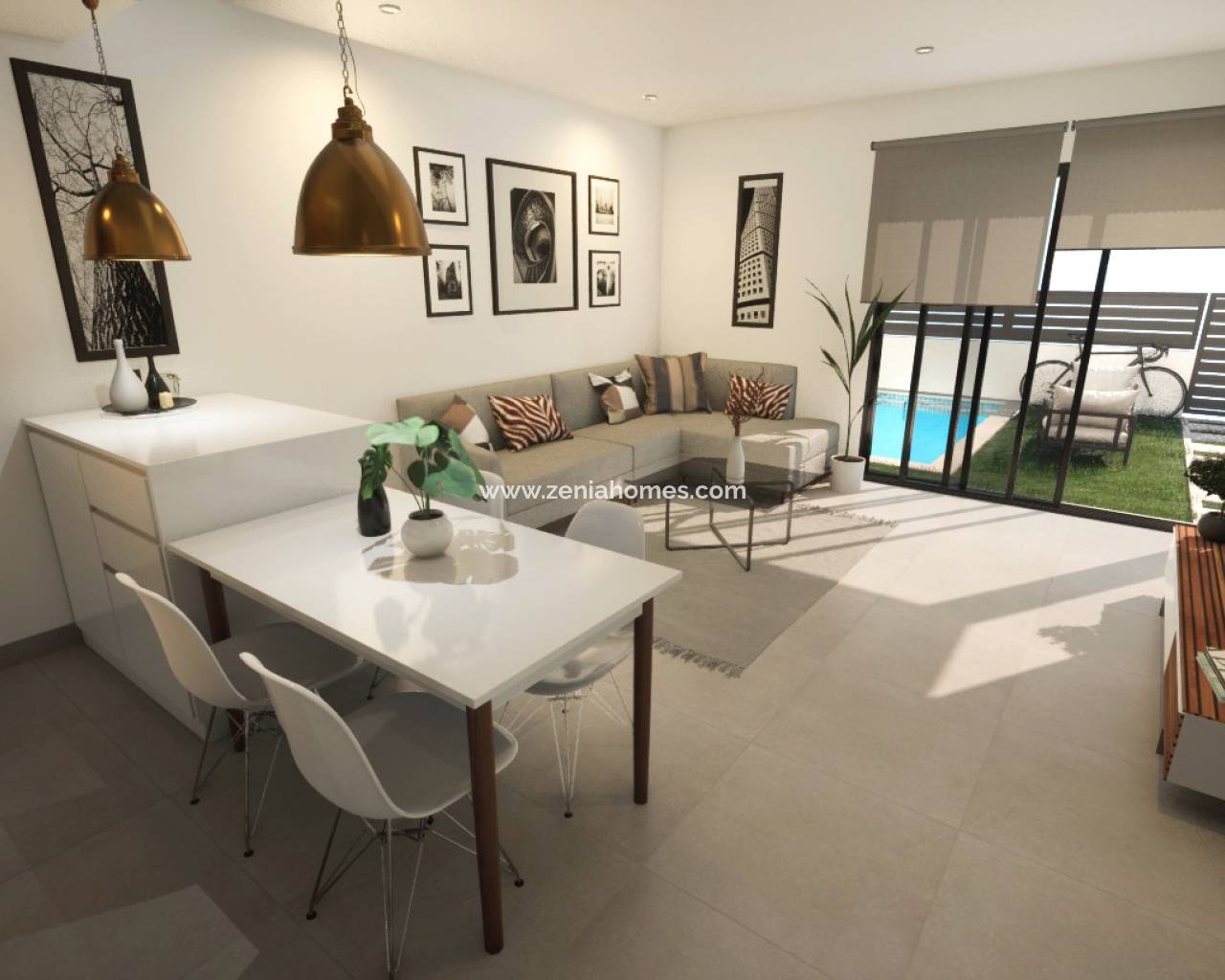 A small complex of beautifully modern designed properties that are close to the beach, marina & promenade of Los Alcazares. These homes have three bedrooms and two bathrooms, garage and private pool, the property also has a separate larger terrace with a summer kitchen and a sun terrace with sea views!