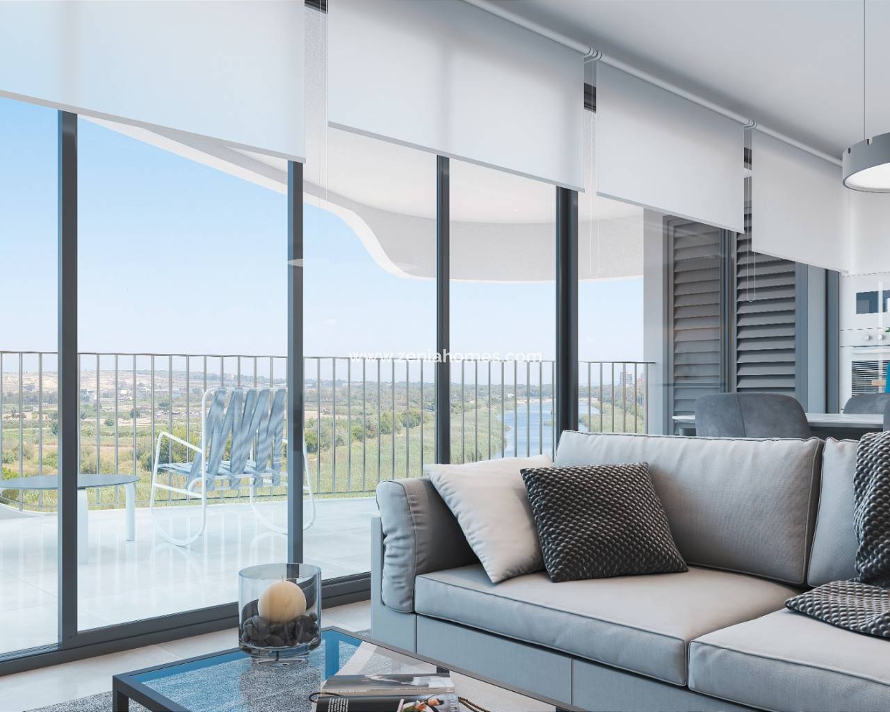 A unique block of apartments with one property per floor, the properties are located next to the river with spectacular views and close to the town center of Guardamar del Segura. The properties have 3 bedrooms and 2 bathrooms and off street parking and a communal pool, the beach can be reached by walking through the pine forest and the marina is only 2 km away. The town of Guardamar is a bustling Spanish town with local markets and lots of amenities and a bus station.