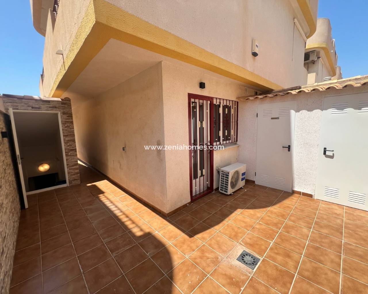 This property is located close to the beaches of La Zenia and La Zenia boulevard, both are within walking distances as well as the many bars and restaurants in this great area of the Costa Blanca. The property has 3 bedrooms, 2 bathrooms and 1 toilet, large terraces and a large underground garage with a seperate lounge/bedroom area. The property has been very well looked after and is South facing overlooking a beautiful park. There is a community pool and the location is great for holidays and rentals