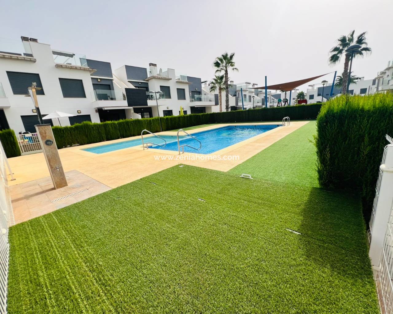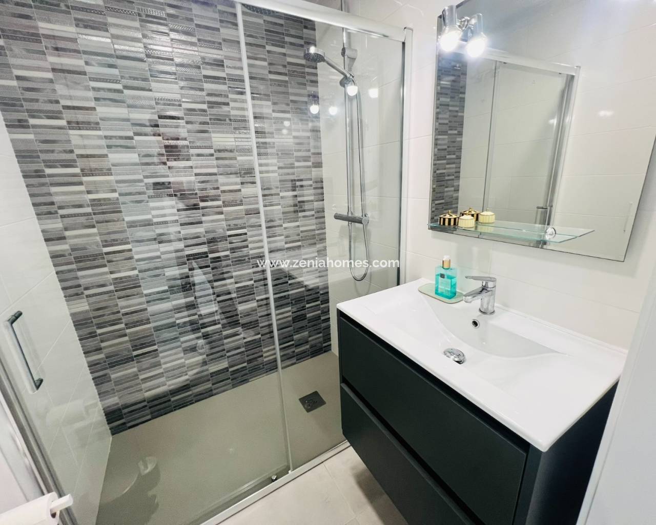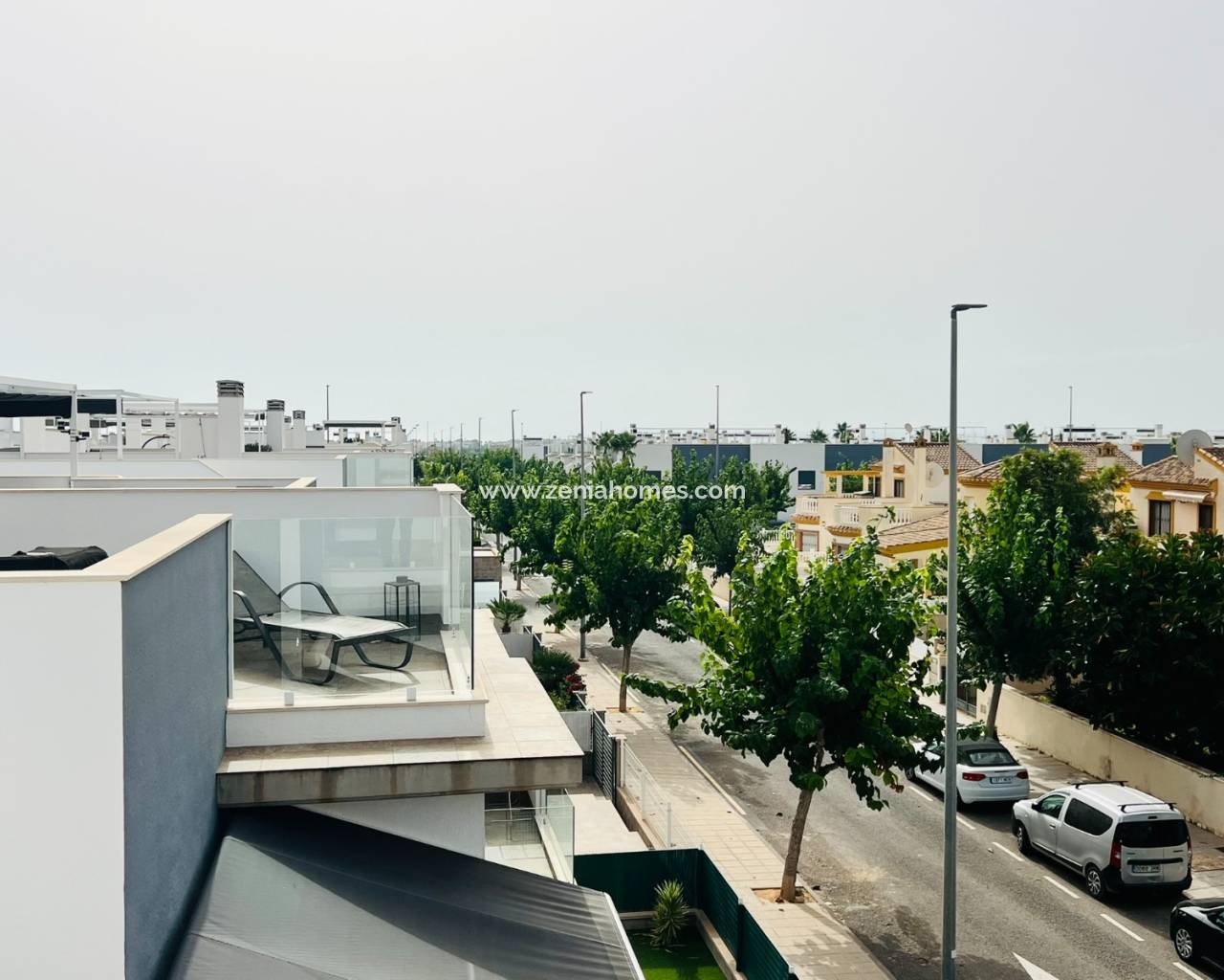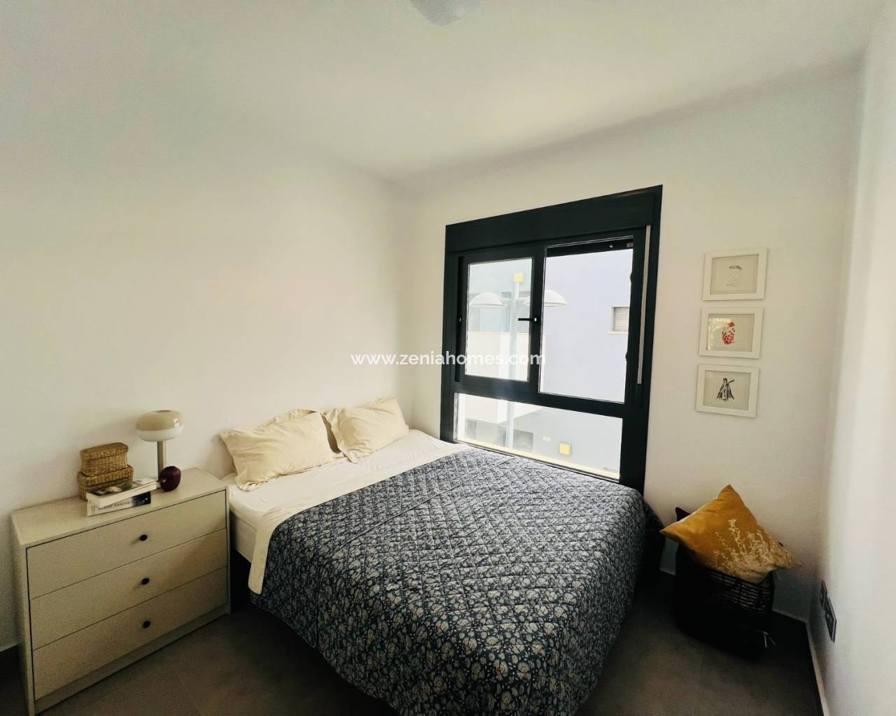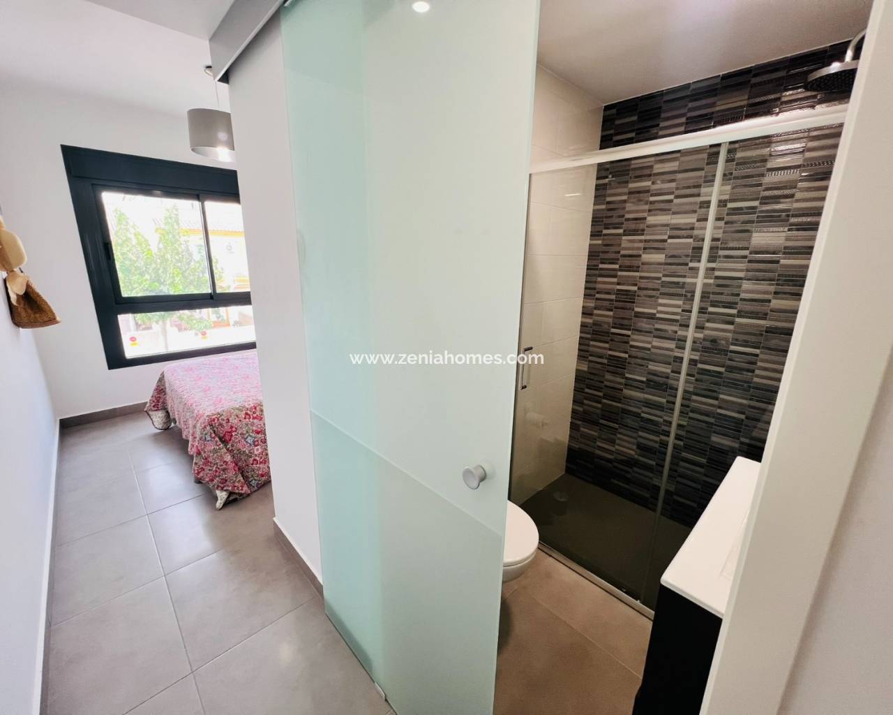 A beautifully looked after penthouse property with a large sun terrace. This property is South facing and has sea views, the property has 2 bedrooms and 2 bathrooms, one which is en-suite. The complex has 2 large communal swimming pools and a children's play park. The property comes fully furnished and has an off street parking space and a store room. The large balcony leads to an even larger sun terrace which has a pergola for shade and another storage room. The property is located close to the sports center and the rambla which you can walk or cycle down to the long sandy beach.