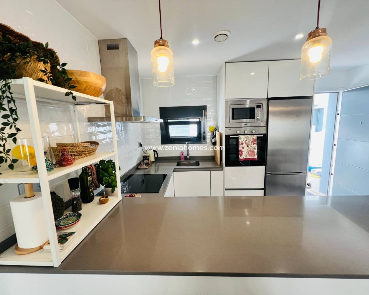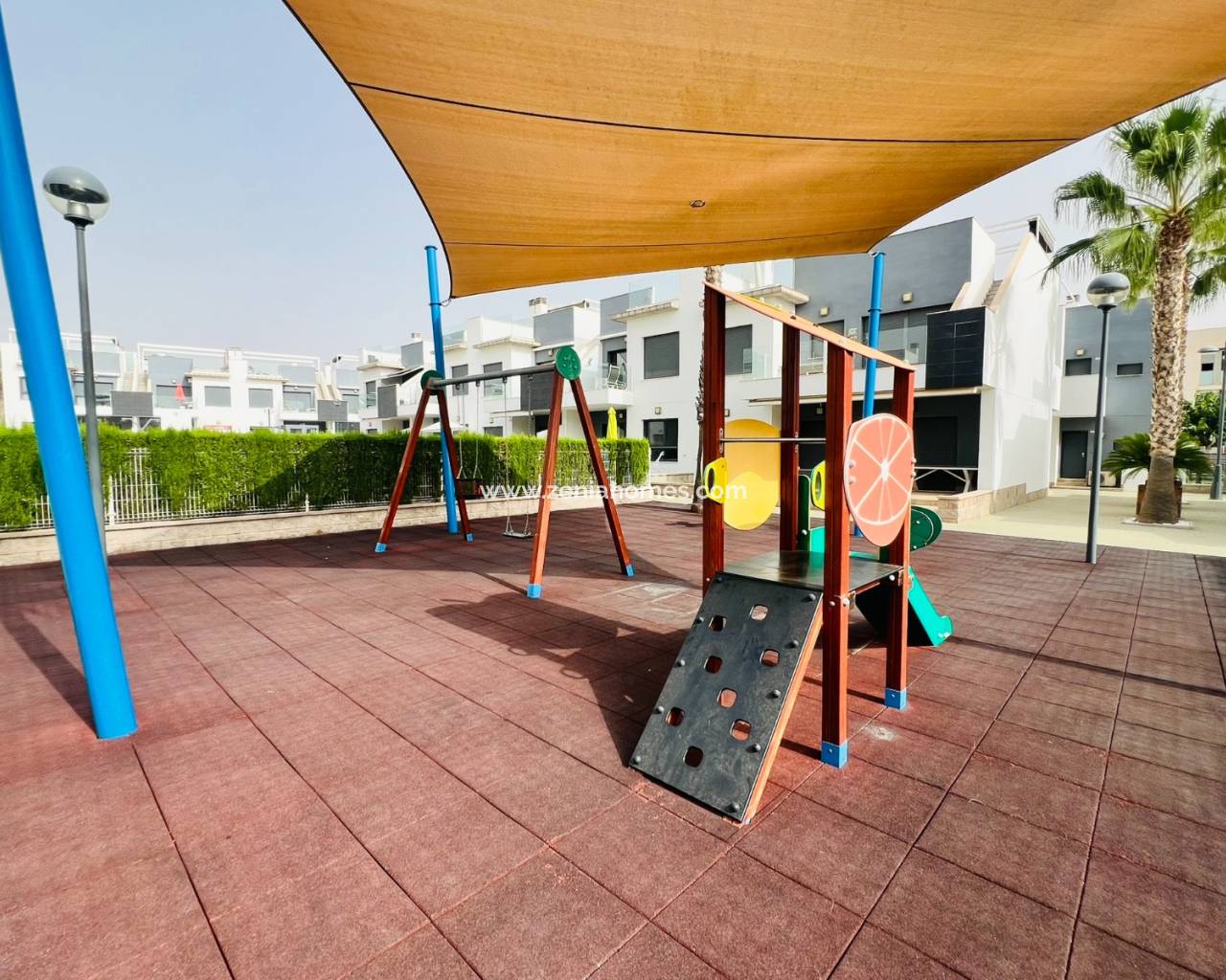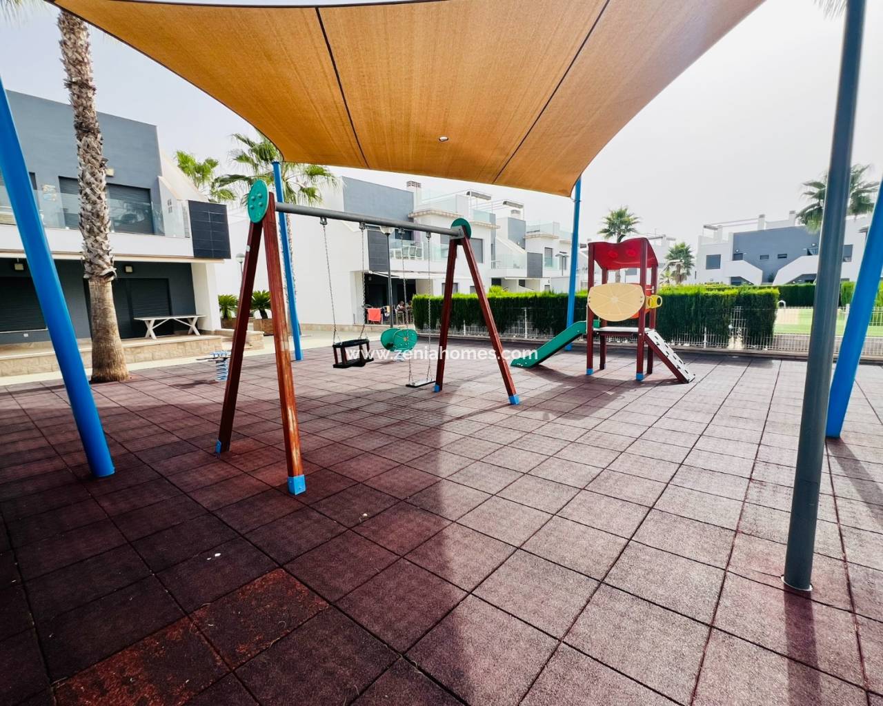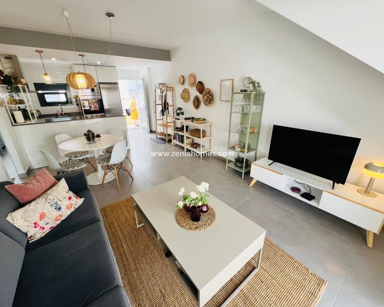 A beautifully looked after penthouse property with a large sun terrace. This property is South facing and has sea views, the property has 2 bedrooms and 2 bathrooms, one which is en-suite. The complex has 2 large communal swimming pools and a children's play park. The property comes fully furnished and has an off street parking space and a store room. The large balcony leads to an even larger sun terrace which has a pergola for shade and another storage room. The property is located close to the sports center and the rambla which you can walk or cycle down to the long sandy beach.
