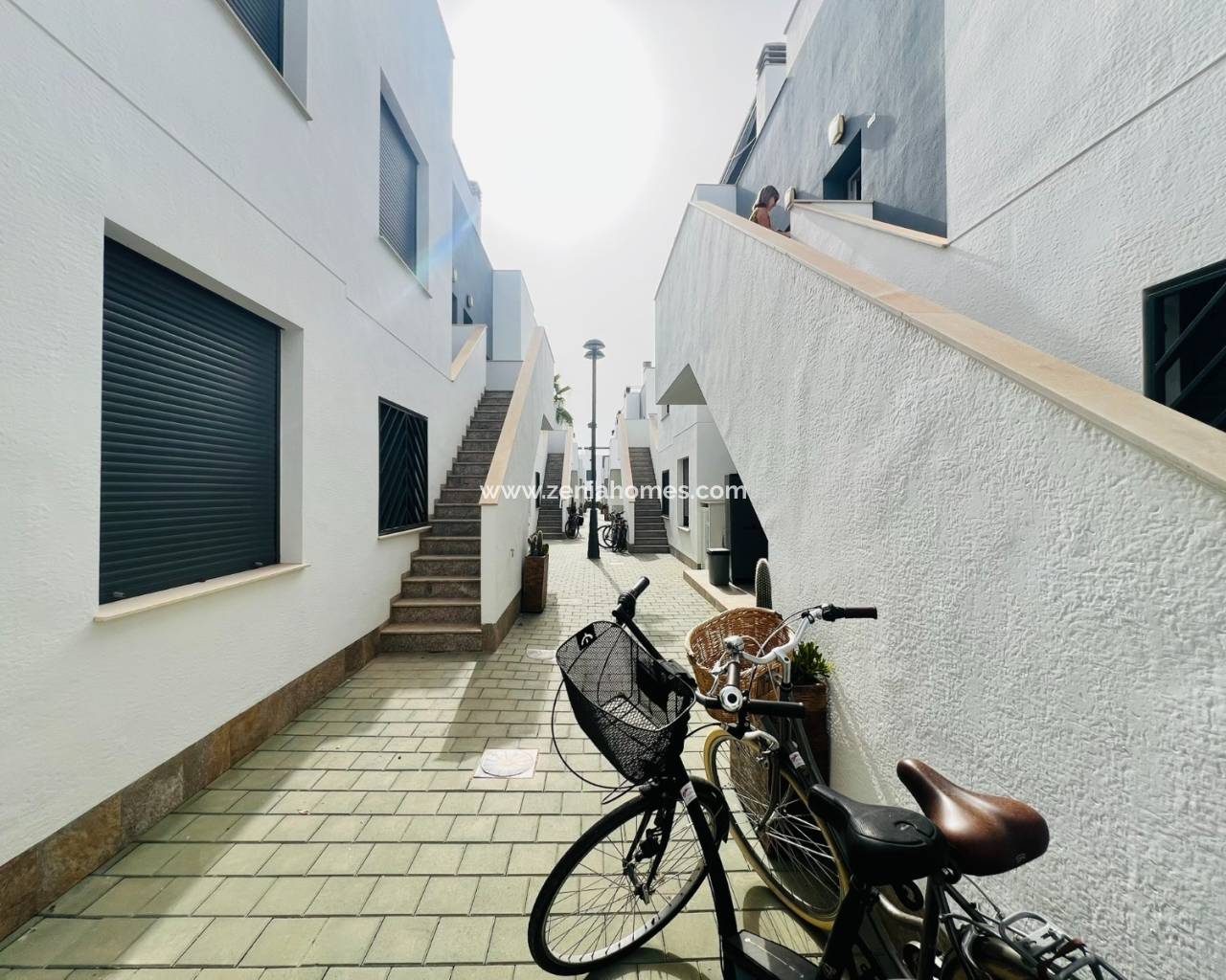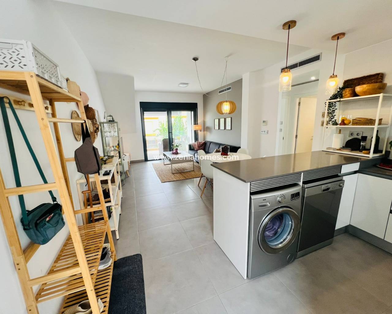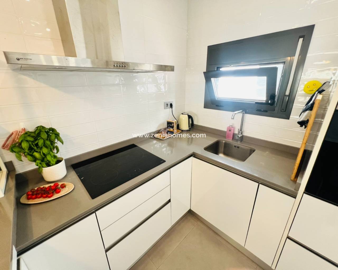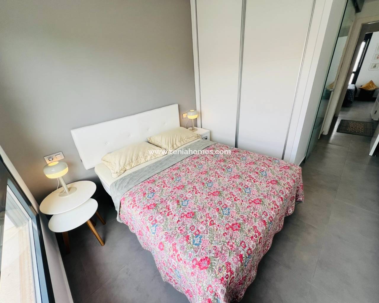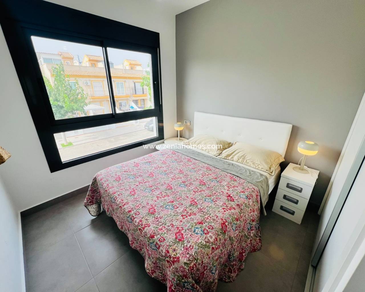 A beautifully looked after penthouse property with a large sun terrace. This property is South facing and has sea views, the property has 2 bedrooms and 2 bathrooms, one which is en-suite. The complex has 2 large communal swimming pools and a children's play park. The property comes fully furnished and has an off street parking space and a store room. The large balcony leads to an even larger sun terrace which has a pergola for shade and another storage room. The property is located close to the sports center and the rambla which you can walk or cycle down to the long sandy beach.