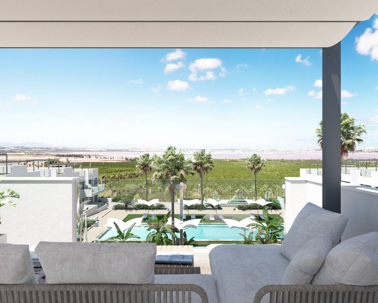 With just 48 units on the site, the residences consist of two bedrooms and two bathrooms, with the option of a third bedroom to suit your needs. Each apartment offers spectacular views of the pink lagoon of Torrevieja, creating a unique experience where nature becomes an integral part of your daily life.