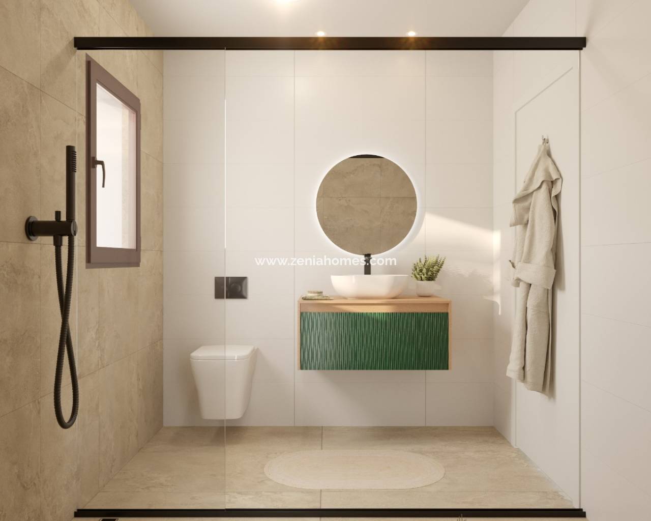 Discover these new design villas in one of the most exclusive places on the Costa Blanca. With spectacular views over the Finca golf Resort, these modern properties with Mediterranean touches with 3 bedrooms and 2 bathrooms, take you to a privileged corner where you can enjoy the nice weather and the tranquility of the area