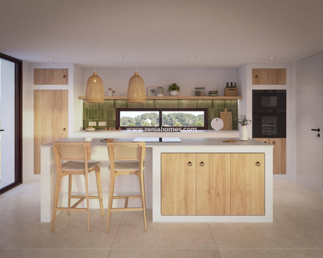 A Contemporary Gem in Moraira Nestled in the beautiful town of Moraira, in the exclusive Benimeit area, this newly built Mediterranean-style villa stands as a luxury retreat, designed to offer the best in comfort and style. With meticulous finishing and a focus on functionality, this home is a true delight for the senses. Property Details The villa boasts a generous space of 559 m² built, harmoniously distributed across 4 bedrooms and 3 bathrooms. Every corner of this house has been designed to maximize natural light and provide a spacious and welcoming environment. The south-facing orientation ensures that the sun illuminates every area throughout the day, creating a warm and inviting atmosphere. Exclusive Amenities This home is equipped with centralized air conditioning and ducted heating, ensuring a pleasant temperature in every season. The open-concept kitchen is fully equipped to satisfy the most demanding culinary desires. Enjoy your family or social gatherings in the large living room that flows to the outside, where a charming garden and a private pool invite you to relish the wonderful sunny days of the Costa Blanca. The outdoor areas of the villa are equally impressive. A balcony that extends towards the horizon and a covered terrace offer the perfect setting to enjoy the beautiful Mediterranean views. Additionally, the barbecue area and the summer kitchen turn any gathering into an unforgettable outdoor celebration. After a day of fun, relax under the refreshing outdoor shower. Security and Comfort The villa not only stands out for its design and amenities but also for its emphasis on security and privacy. With a reinforced security door and a fenced plot, you can rest assured that your home is a safe sanctuary. The double-glazed windows not only provide unobstructed views but also enhance the energy efficiency of the property. Desirable Location Located in Moraira, one of the jewels of the Costa Blanca, this villa is close to golden sandy beaches, exquisite dining options, and a vibrant cultural life. Golf enthusiasts have access to world-class courses, and nature lovers will enjoy hiking through stunning natural landscapes. This newly constructed villa in Moraira is more than just a home; it is a lifestyle filled with elegance, comfort, and Mediterranean charm. A sanctuary where every day is a celebration of luxury and tranquility.
