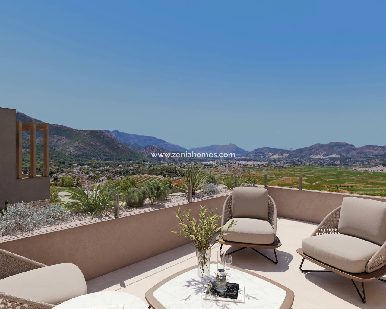 Elements EcoResidences is born in Llíber, in the heart of the Vall de Pop, as a place where nature and architecture merge to create a unique lifestyle. Here, surrounded by vineyards, mountains, and charming villages, lies a development that reinterprets Mediterranean tradition with contemporary, sustainable design, offering each resident the opportunity to live in harmony with the landscape. The infrastructure has been designed from the ground up, using the most advanced and responsible techniques to create an environment meticulously crafted down to the last detail. Moreover, the development encourages shared experiences: a social club with a restaurant, spa, and gym; community gardens; sports facilities; and green spaces that strengthen the connection with both nature and the community. A place where life is savoured slowly, with the tranquillity and authenticity of the Northern Costa Blanca. Within this context, the Airen Collection emerges — villas designed to harmonise with the surroundings and offer homes with soul. The Airen B model is the perfect choice for those who wish to separate living and relaxation spaces. The ground floor features a spacious living-dining area with an open-plan kitchen that extends seamlessly onto the terrace and private pool. The upper floor is a private retreat: three bedrooms with private terraces framing views of the valley and the Sierra del Castell d’Aixa. The master suite, complete with en-suite bathroom and walk-in wardrobe, becomes a space to begin and end the day in tranquillity. All of this is complemented by features that ensure comfort and sustainability: aerothermal heating, underfloor heating, photovoltaic panels, home automation, and an electric car charger. Airen B is more than a villa — it is an invitation to discover a new way of living, in harmony with nature, design, and oneself.