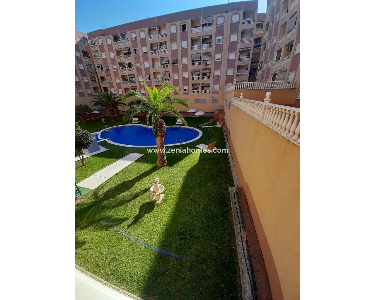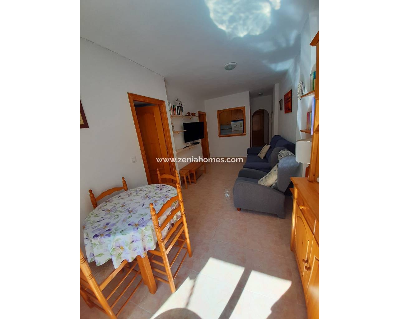 This 60m² apartment, located on the first floor with an elevator, features two bedrooms, one bathroom, a French kitchen, and an east-facing living room, ensuring plenty of natural light. It is in very good condition and is sold furnished, excluding personal belongings. The building provides access to a communal pool and green areas. Its location is key: very close to the Parque de las Naciones and just 500 meters from Acequión Beach. IBI tax: €170 per year and communty fees €30 monthly A practical, ready-to-move-in option.