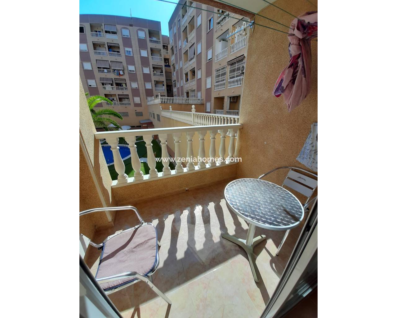 This 60m² apartment, located on the first floor with an elevator, features two bedrooms, one bathroom, a French kitchen, and an east-facing living room, ensuring plenty of natural light. It is in very good condition and is sold furnished, excluding personal belongings. The building provides access to a communal pool and green areas. Its location is key: very close to the Parque de las Naciones and just 500 meters from Acequión Beach. IBI tax: €170 per year and communty fees €30 monthly A practical, ready-to-move-in option.