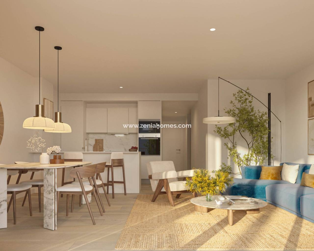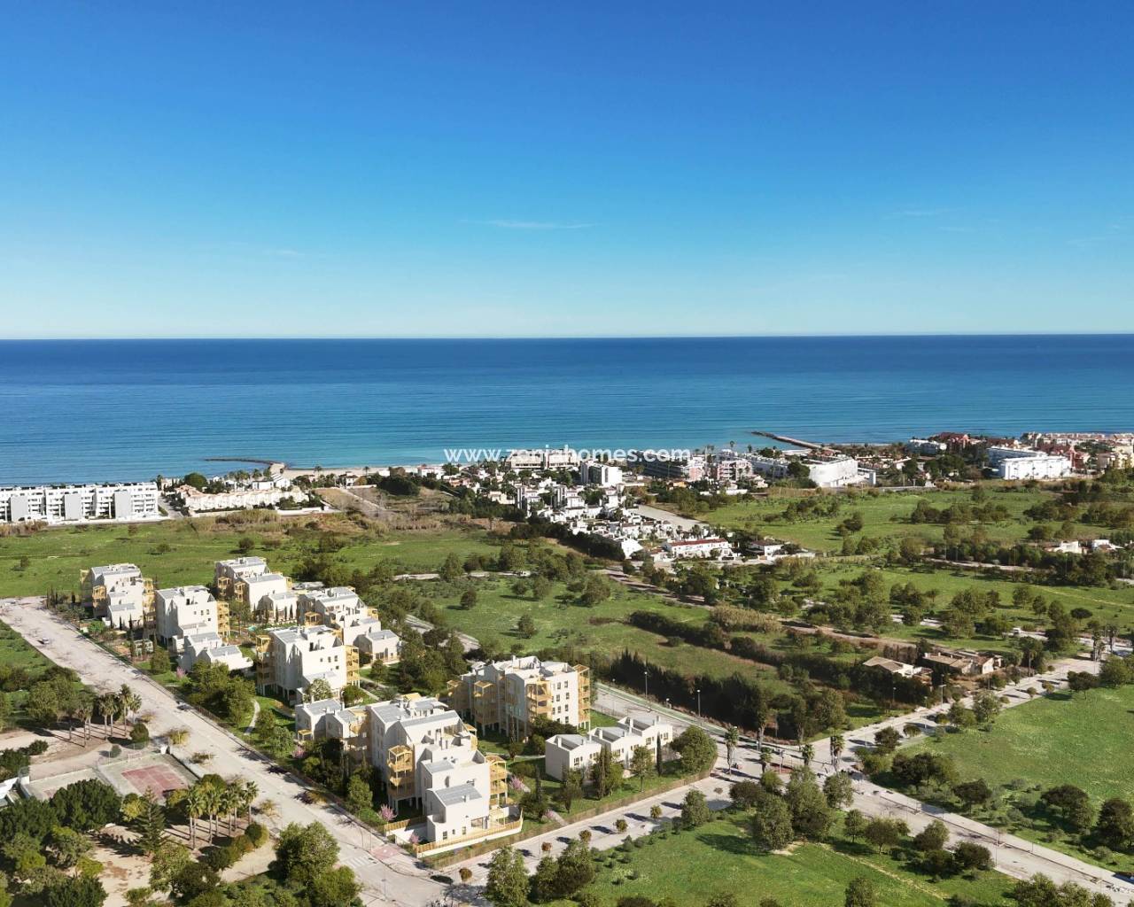 A new development located only 500 meters from the beach. The development will have a communal pool and changing rooms, landscaped area for sun loungers and parasols, equipped gym and sauna, social club, urban gardens, covered cycle park with electric charging point, boules area, children's playground, reading area, relaxing area & pet spa. The properties are available with 1, 2 or 3 bedrooms and are located 15 minutes away from the heart of Denia.
