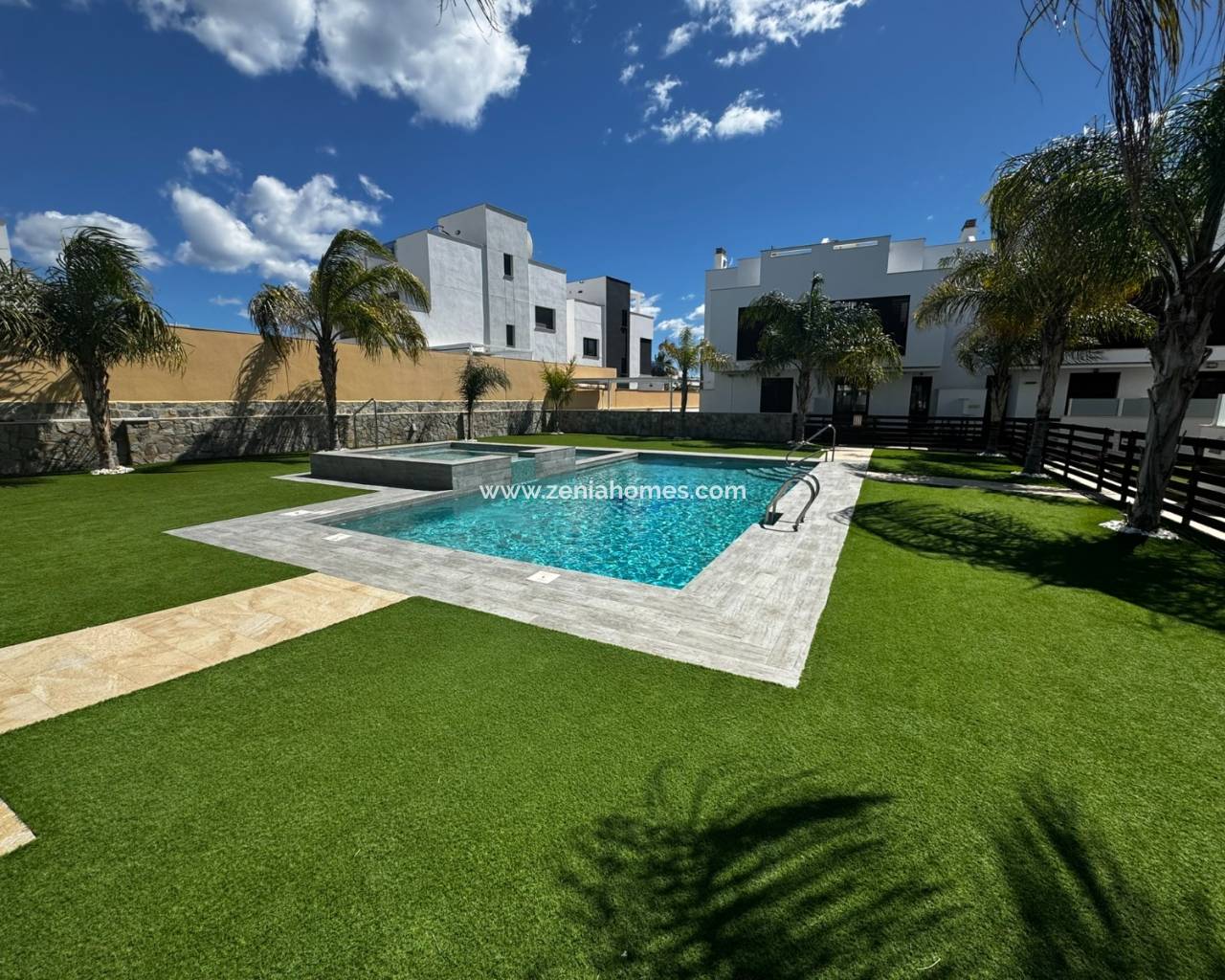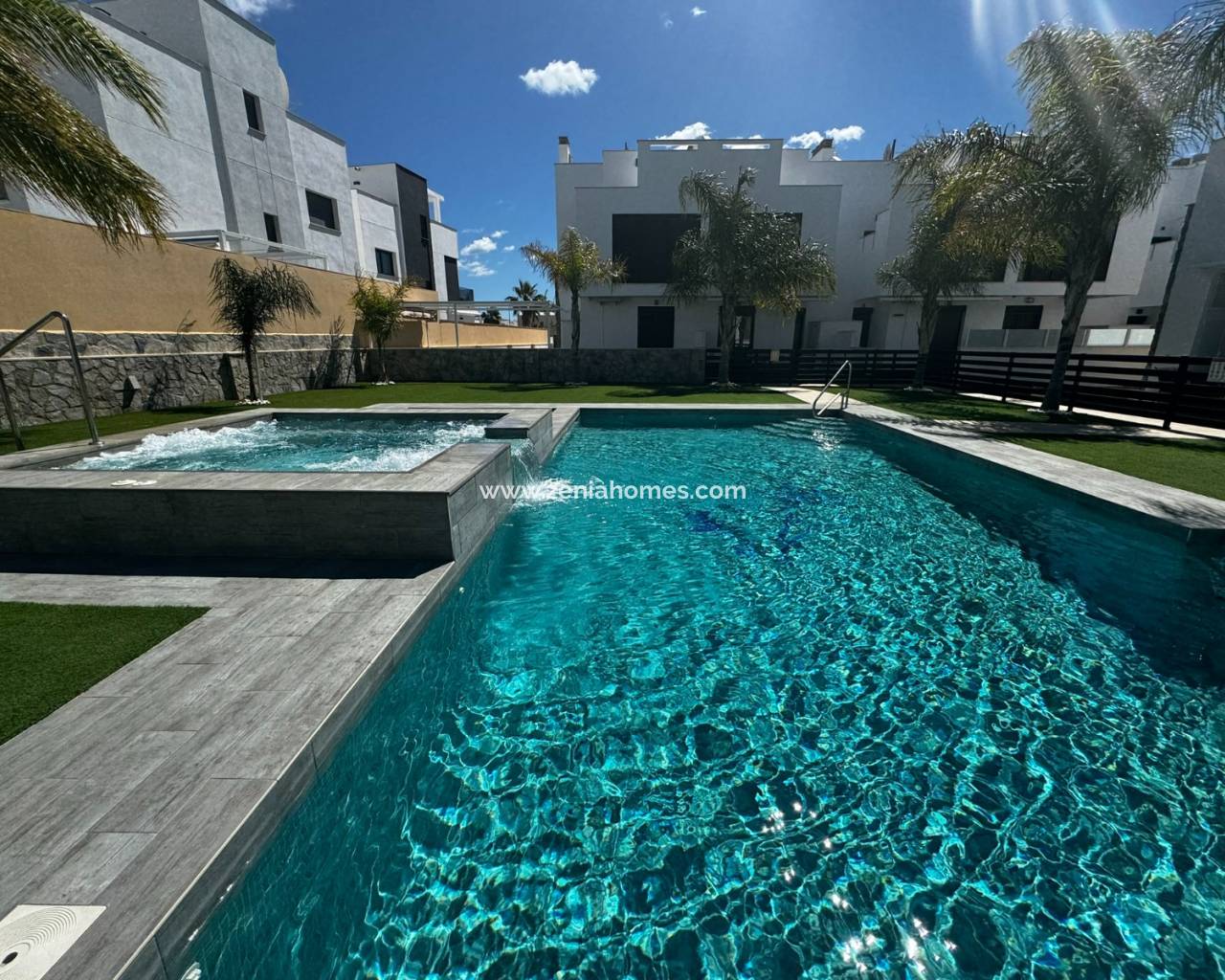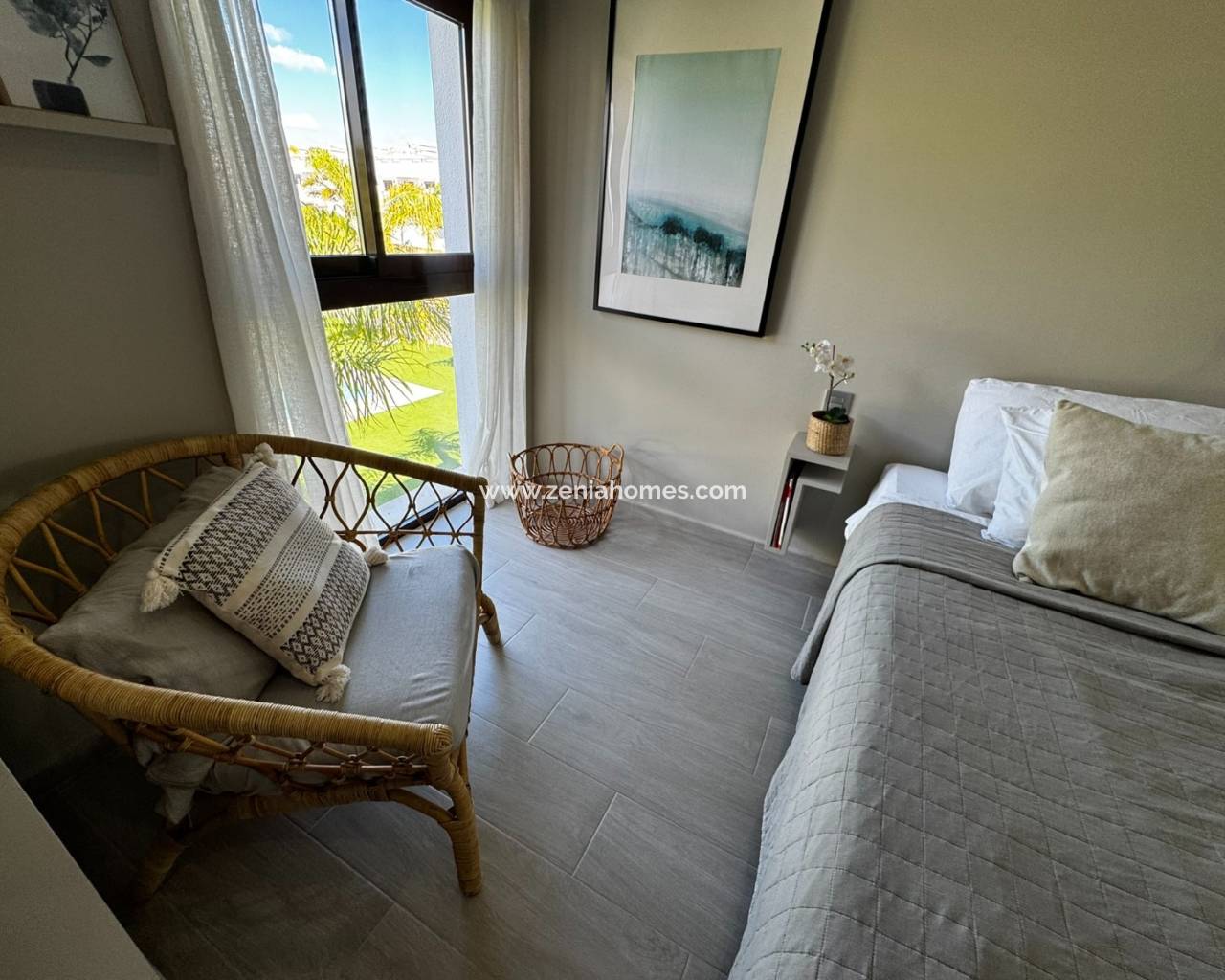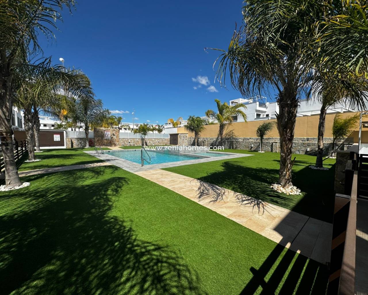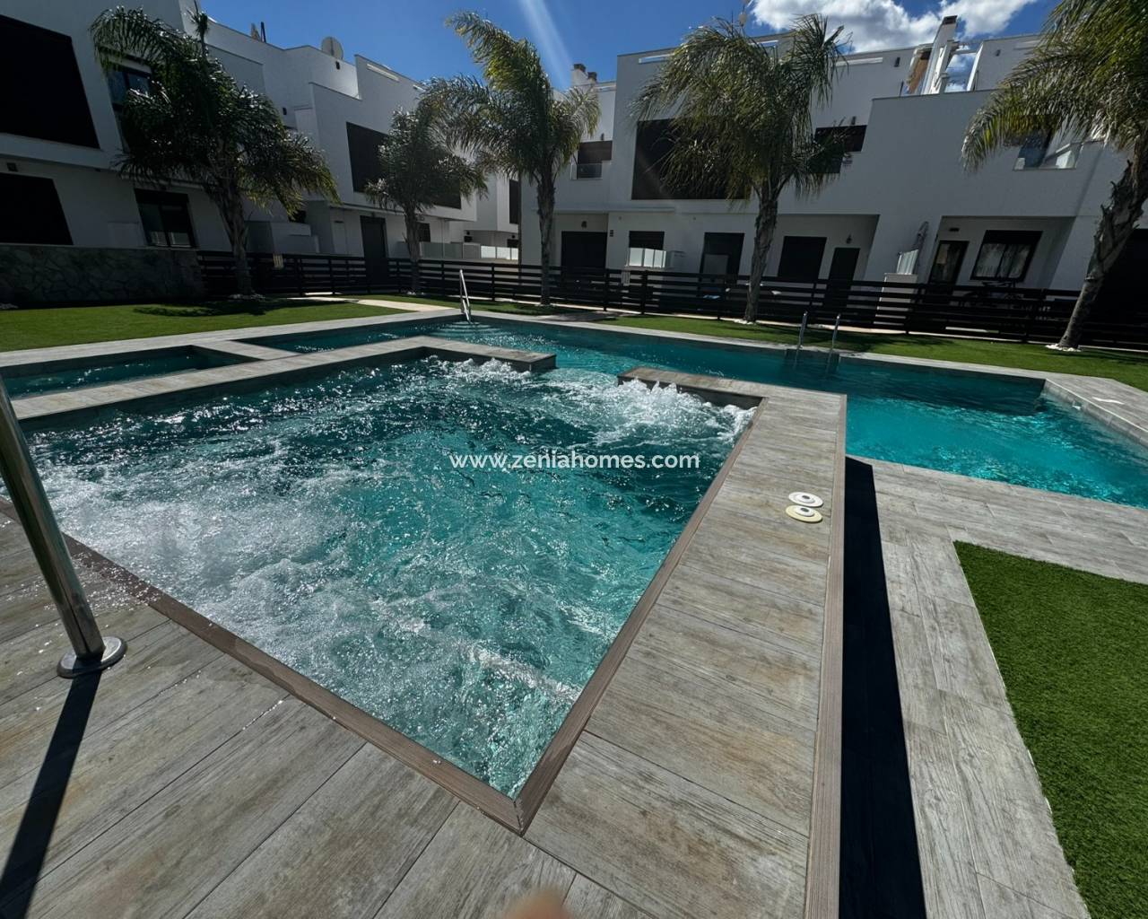 En perfekt underhållen takvåning med vacker inredning och finish. Denna fastighet har 2 sovrum och 2 badrum, båda med golvvärme och varm/kall luftkonditionering. Utmärkt läge med utsikt över parken och havet från den rymliga soliga terrassen, där ägarna har installerat ett pentry, förråd och en stor hopfällbar pergola för komfort i alla väderförhållanden. Samhället har en vacker gemensam pool, en för vuxna och en för barn, och en trevlig jacuzzi.