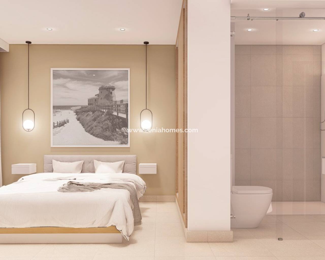 En fantastisk möjlighet att förvärva en semesterlägenhet vid havet i La Torre de la Horadada. Alla dessa hem har 3 sovrum och 2 badrum, är fullt möblerade och har golvvärme, luftkonditionering, belysning, en underjordisk parkeringsplats och ett förråd.