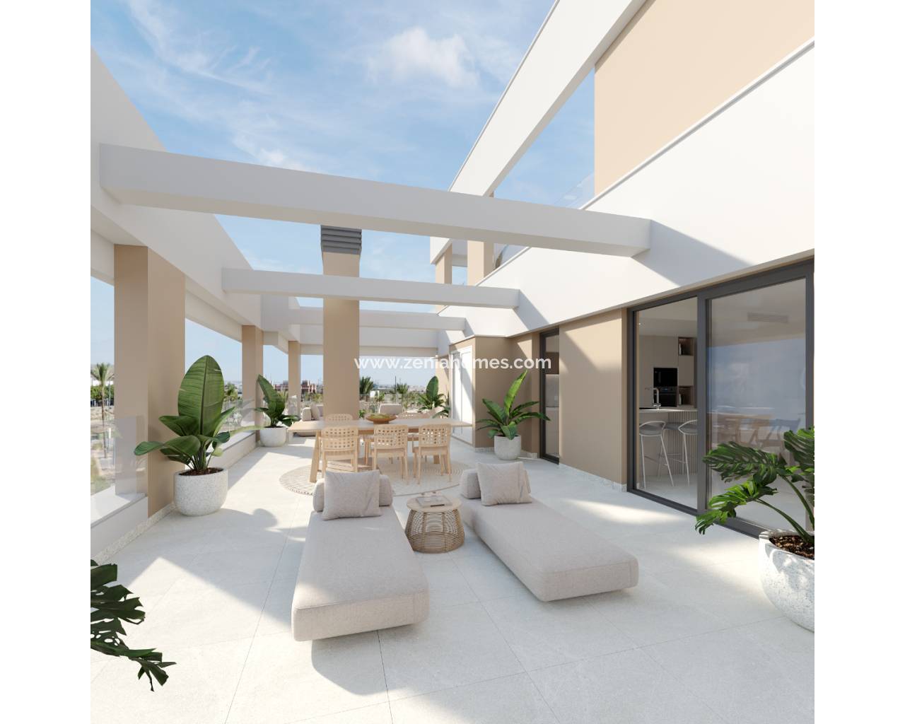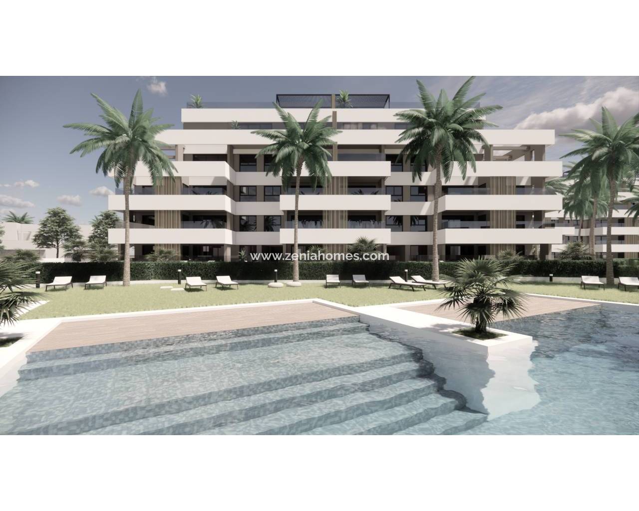 Dessa takvåningar har 3 sovrum och 2 badrum, rymliga balkonger och stora soliga terrasser, med förberedelse för sommarkök och jacuzzi. Fastigheten har en gemensam pool och en lekplats och utsikt över den 17 000 m² stora sjön med dess stränder och öar. Havet ligger några minuter bort med bil.
