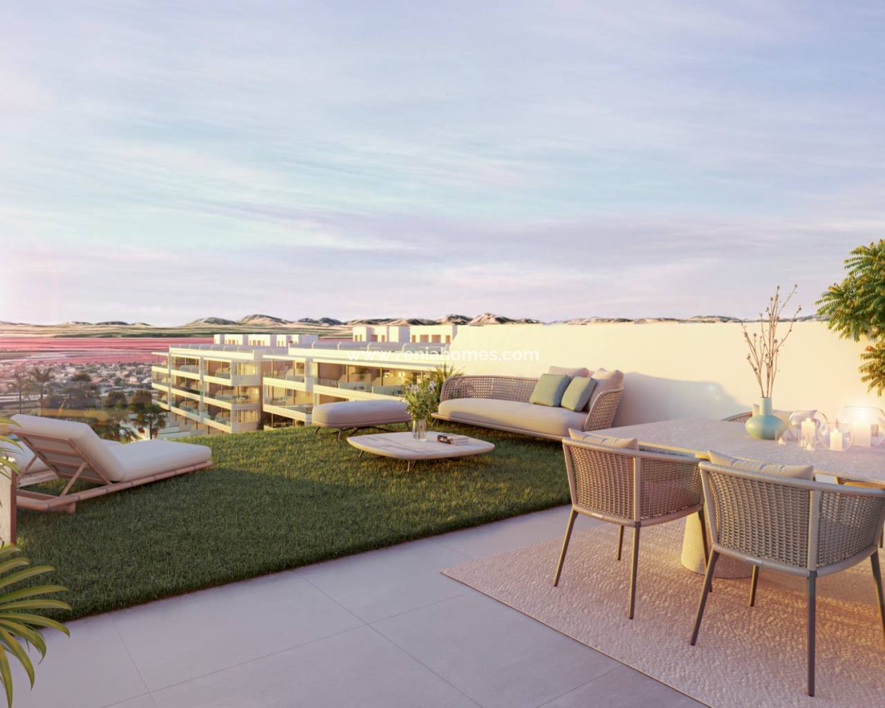 Ett nytt bostadsområde nära Torrevieja med lägenheter med 2 eller 3 sovrum och 2 badrum. Lägenheterna har golvvärme i badrummen, garage och förråd. Området har även en gemensam pool, spa, bastu, gym och paddeltennisbanor.